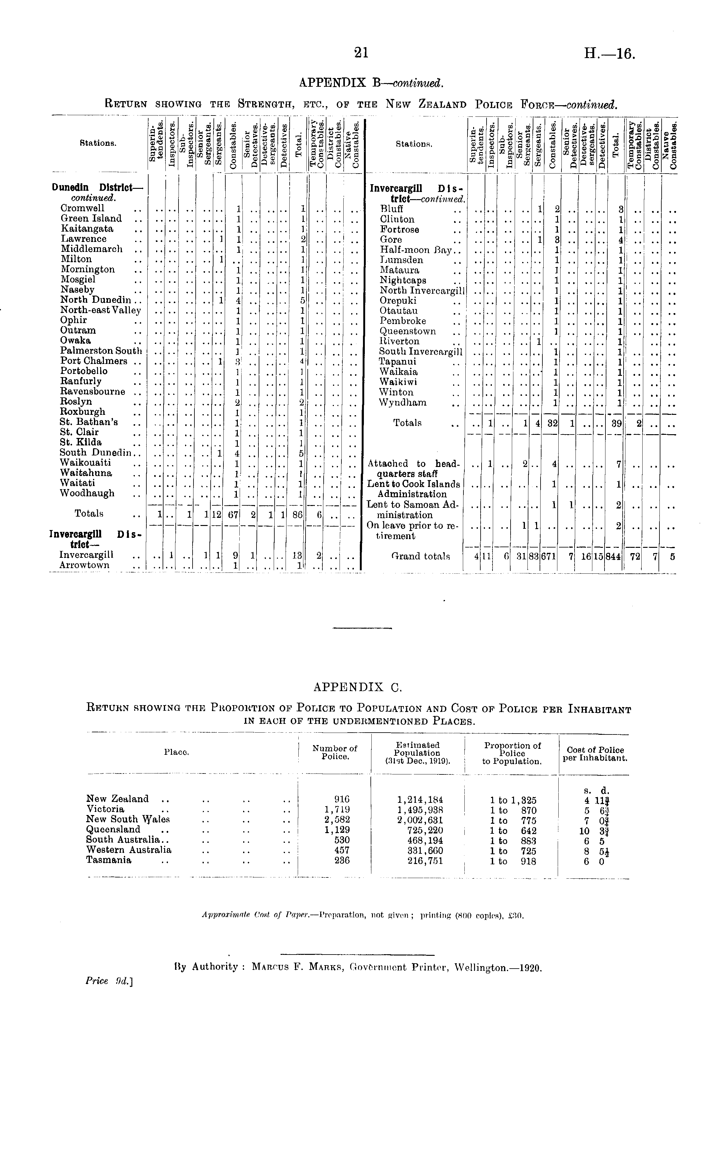 APPENDIX B— continued. Return showing the Strength, etc., of the New Zealand Police Force— continued.