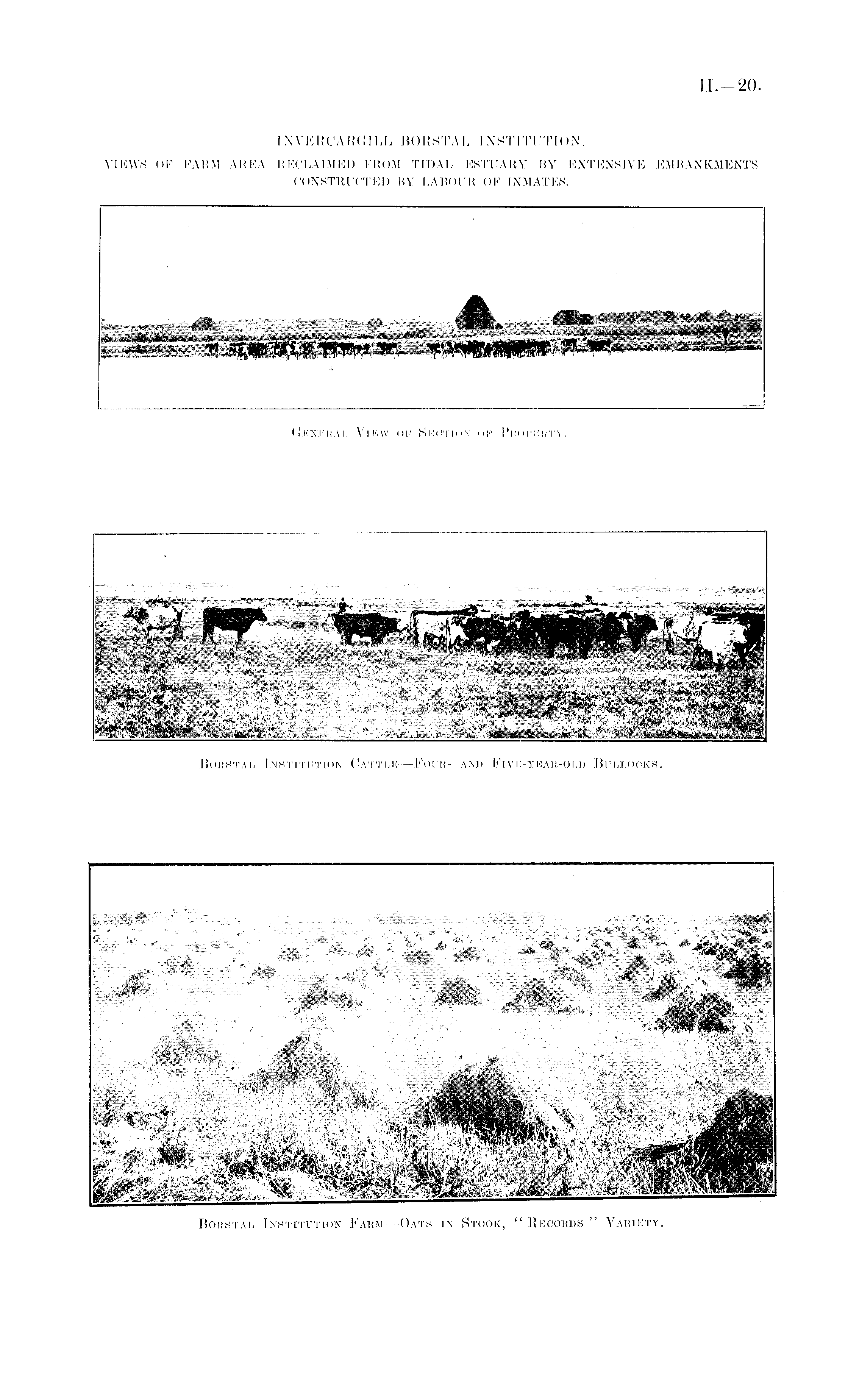 INVERCARGILL BORSTAL INSTITUTION. VIEWS OF FARM AREA RECLAIMED FROM TIDAL ESTUARY BY EXTENSIVE EMBANKMENTS CONSTRUCTED BY LABOUR OF INMATES.