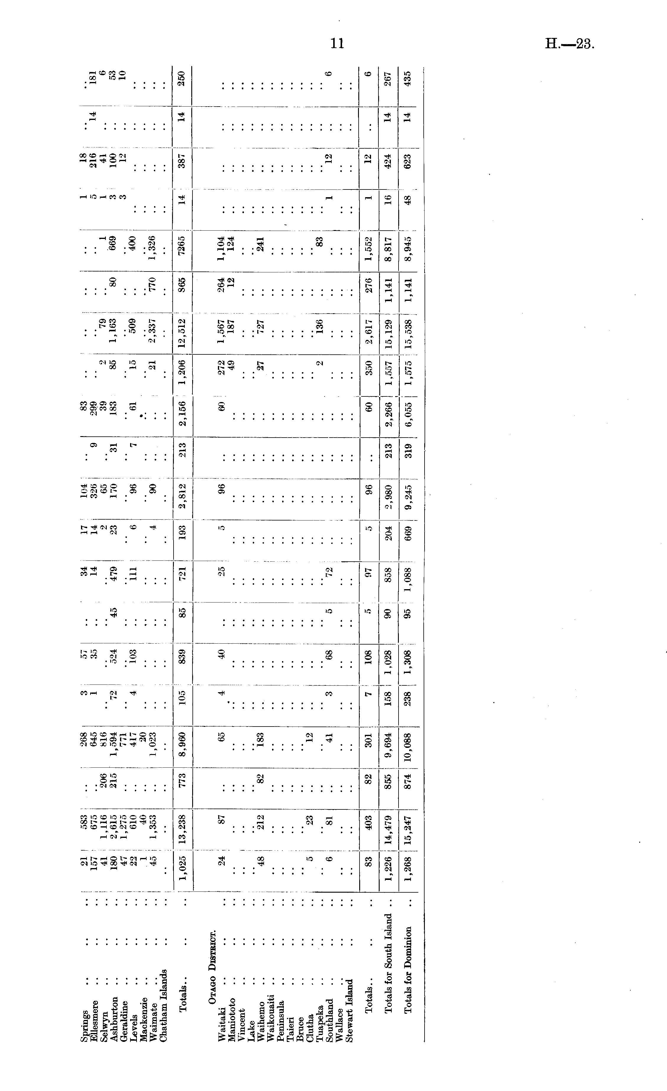 Springs ilUesmere Selwyn Ashburton Jeraldine dackenzie Vaimate Chatham Islands 21 157 41 180 47 22 1 45 583 675 1,116 2,615 1,275 610 40 1,353 206 215 -COO 645 816 1,594 771 417 20 1,023 3 1 72 57 35 524 "45 34 14 479 17 14 2 23 104 326 65 170 9 31 299 39 183 2 85 "79 1,163 "80 1 669 1 5 1 3 3 18 216 41 100 12 "l4 181 6 53 10 ! 4 103 in 6 96 7 "61 15 509 400 4 90 : _. 21 2,337 770 1,326 I .. -• •• Totals 1,025 1 13,238 773 — 1,025 13,238 773 8,960 105 839 85: 721 193 2,812 213 2,156 1,206 12,512 865 726S 14 387 j 14 I 250 ' Otago District. ' iVaitaki tlaniototo Vincent jake .. .. .. I Vaihemo Vaikouaiti .. 5 eninsula Daieri 24; 87 212 "82 "82 65 183 4 40 25 5 .,\ 96 •■ •• 60 272 49 27 1,567 187 ■727 264 12 1,104 124 •- 241 I Jruee .. .. .. Jlutha tuapeka Southland VaUace Stewart Island 5 6 "' "23 81 12 •• ■■ ■• • • •- 41 " 3 "68 5 '72 2 136 1 1 "l2 6 - 1 •- .. •■ I Totals.. 83 403 82 1 83 403 82 301 7 108 5 97 5 ! 96 60 350 2,617 276 1,552 12 Totals for South Island .. 1,226 1 1,226 j 14,479 14,479 855 855 9,694 158 1.028 90 858 204 2,980 213 2,266 1,557 15,129 1,141 8,817 16 ! 424 ' 14 267 Totals for Dominion 1,268 1 1,268 15,247 15,247 874 874 10,088 238 ! 1,308 95 1,088 669 1 9,245 15,538 ! 1,141 8,945 48 623 14 435 319 6,055 ; I 1,575 I I