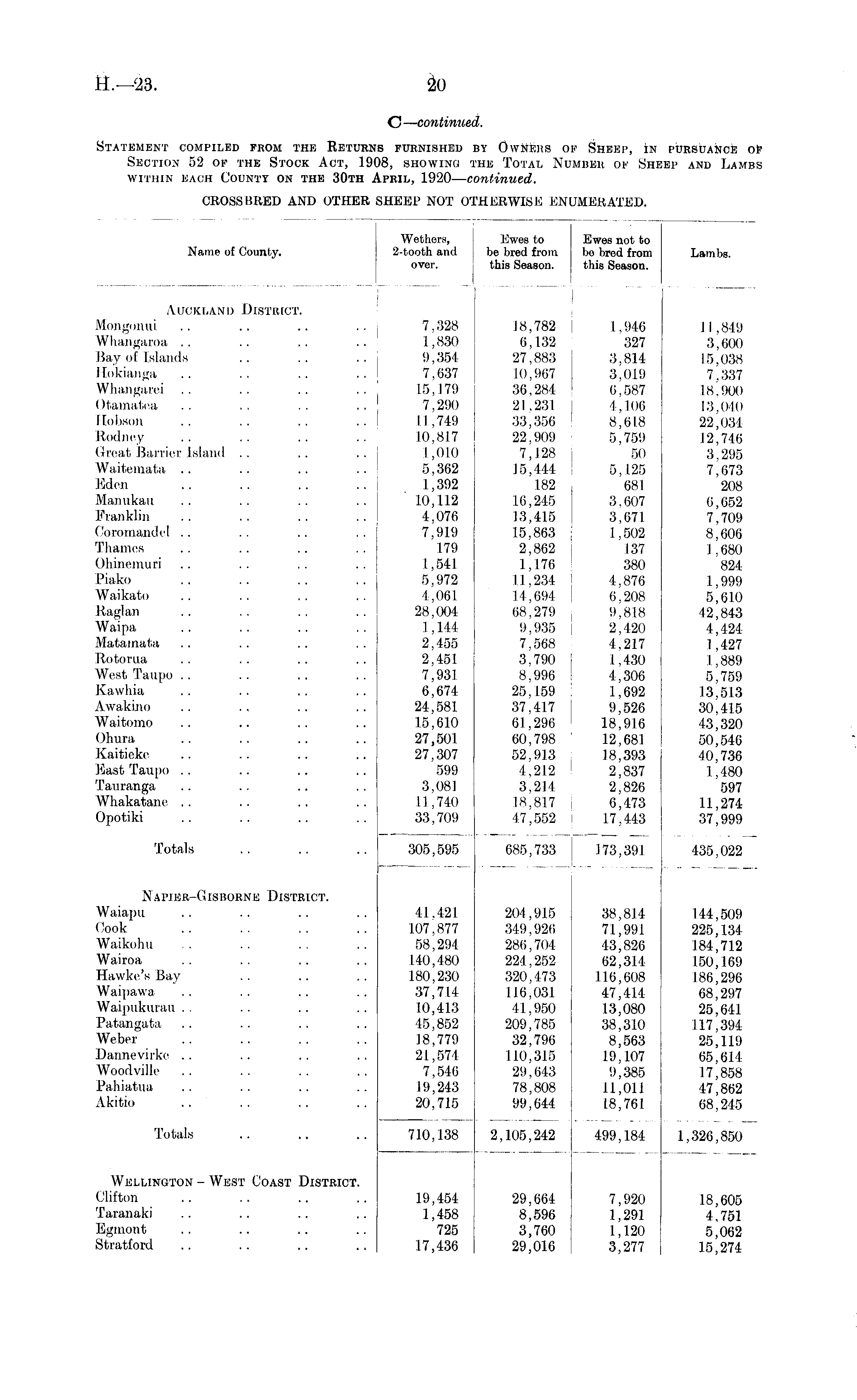 C — continued. Statement compiled from the Returns furnished by Owners of Sheep, in pursuance of Section 52 of the Stock Act, 1908, showing the Total Number of Sheep and Lambs within each County on the 30th April, 1920—c ontinued. CROSSBRED AND OTHER SHEEP NOT OTHERWISE ENUMERATED.