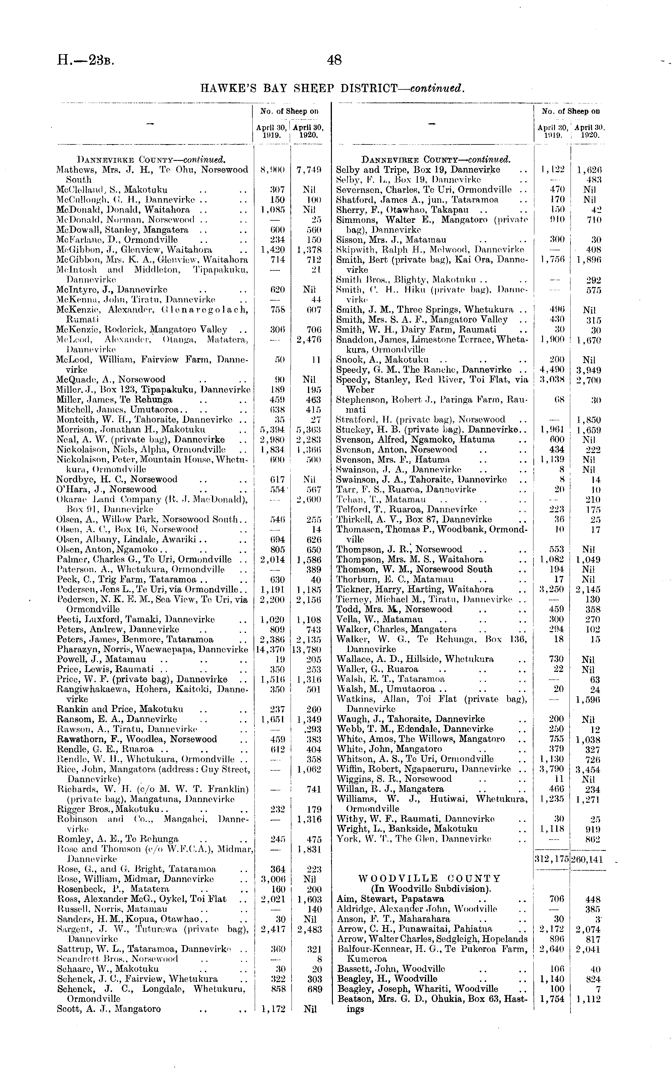 No. of SI April 30, 1919. ] heep on April 30, 1920. 1 )anneviiike County— continued. Mathews, Mrs. J. H, Te Ohu, Norsewood South MoClelland, S., Makotuku McCullough, G. IP, Dannevirke .. McDonald, Donald, Waitahora McDonald, Norman, Norsewood McDowall, Stanley, Mangatera McFarlane, D., Ormondvillo McGibbon, J., Glenview, Waitahora McGibbon, Mrs. K. A., Glenview, Waitahora Mcintosh and Middleton, Tipapakuku, Dannevirke Mclntyre, J., Dannevirke McKenna, John, Tiratu, Dannevirke McKenzie, Alexander, G lenaregolach, Rumati McKenzie, Roderick, Mangatoro Valley McLeod, Alexander, Otanga, Matatera, Dannevirke McLeod, William, Fairviow Farm, Dannevirke McQuade, A,., Norsewood Miller. J., Box 1,23, Tipapakuku, Dannevirke Miller, James, Te Rehunga Mitchell, James, Umutaoroa.... Montcith, W. H., Tahoraite, Dannevirke .. Morrison, Jonathan H., Makotuku Neal, A. W. (private bag), Dannevirke Nickolaison, Niels, Alpha, Ormondville Nickolaison, Peter, Mountain House, Whetukura, Ormondville Nordbye, H. G, Norsewood O'Hara, J., Norsewood Okarae Land Company (R. J. MacDonald), Box 91, Dannevirke Olsen, A., Willow Park, Norsowood South.. Olsen, A. C, Box 16, Norsewood Olsen, Albany, Lindale, Awariki Olsen, Anton, Ngamoko Palmer, Charles G., Te Uri, Ormondville . . Paterson. A., Whetukura, Ormondville Peek, C, Trig Farm, Tataramoa Pedersen, Jons L., Te Uri, via Ormondville.. Pedersen, N. K. E. M., Sea View, To Uri, via Ormondville Peeti, Luxford, Tamaki, Dannevirke Peters, Andrew, Dannevirke Peters, James, Benmore, Tataramoa Pharazyn, Norris, Waewaepapa, Dannevirke Powell, J., Matamau Price, Lewis, Raumati Price, W. F. (private bag), Dannovirke Rangiwhakaewa, Hohera, Kaitoki, Dannevirke Rankin and Price, Makotuku Ransom, E. A., Dannevirke Rawson, A., Tiratu, Dannevirke Rawsthorn, F., Woodlea, Norsewood Rendle, G. E., Ruaroa Ren die, W. II., Whetukura, Ormondville .. Rice, John, Mangatora (address : Guy Street, Dannevirke) Richards, W. H. (c/o M. W. T. Franklin) (privates bag), Mangatuna, Dannevirke Rigger Bros.,Makotuku.. Robinson and Co,,, Mangahei. Dannevi rke Romley, A. E., To Rehunga Rose and Thomson (c/o W.F.C.A.), Midmar, Dannevirke Rose, G, and G, Bright, Tataramoa Rose, William, Midmar, Dannovirke R,osenbeck, P., Matatera Ross, Alexander McG., Oykcl, Toi Plat .. Russell, Norris, Matamau Sanders, H. M., Kopua, Otawhao Sargent, J. W., Tuturowa (private bag), Dannevirke Sattrup, W. L., Tataramoa, Dannevirke .. Soandrett Bros., Norsewood Sehaarc, W., Makotuku Schenek, J. C, Fail-view, Whetukura Schenck, J. C, Longdale, Whetukura, Ormondville Scott, A. J., Mangatoro 8,900 307 150 I ,085 000 234 1,420 714 620 758 300 50 90 189 459 038 35 5,394 2,980 1,834 000 617 554' 540 094 805 2,014 630 1,1.91. 2,200 7,749 Nil 100 Nil 25 500 150 1,378 712 21 Nil 44 607 700 2,476 II Nil 195 463 415 27 5,363 2,283 1,366 500 Nil 507 2,000 255 14 626 650 1 ,586 389 40 1,185 2,156 1,020 809 2,386 14,370 19 350 1,516 350 1,108 743 2,135 13,780 205 253 1,316 501 237 1,651 459 012 200 1,349 .293 383 404 358 1,062 741 232 179 1.316 245 475 1,831 364 3,000 160 2,021 223 Nil 200 1,603 140 Nil 2,483 30 2,417 300 3(1 322 858 321 8 20 303 689 1,172 Nil