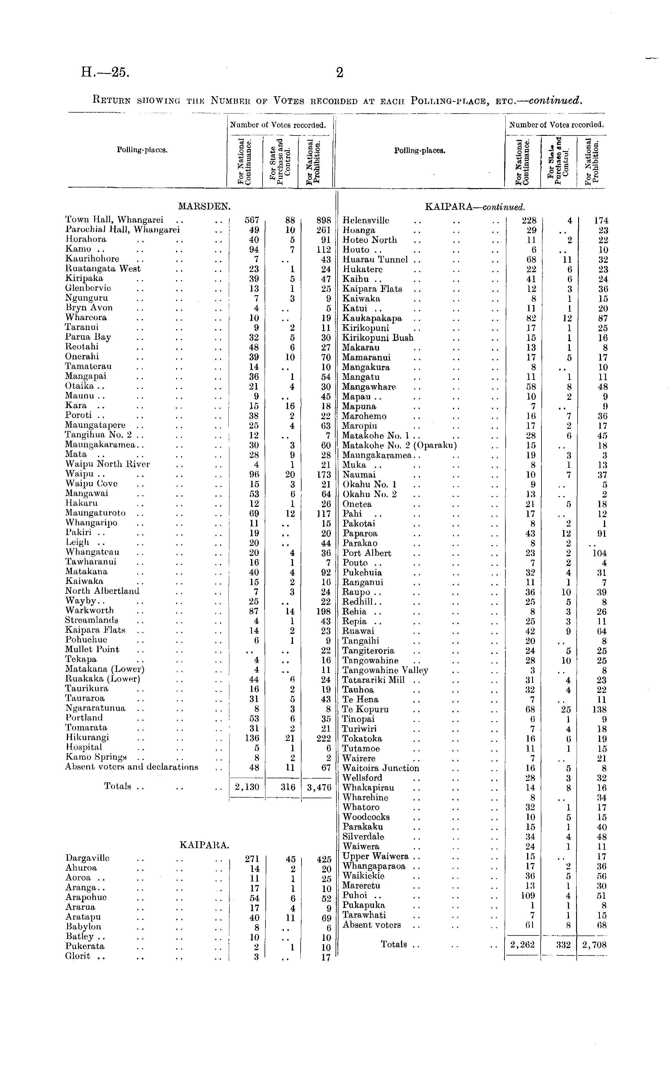 Return showing the Number of Votes recorded at each Polling-place, etc. — continued.