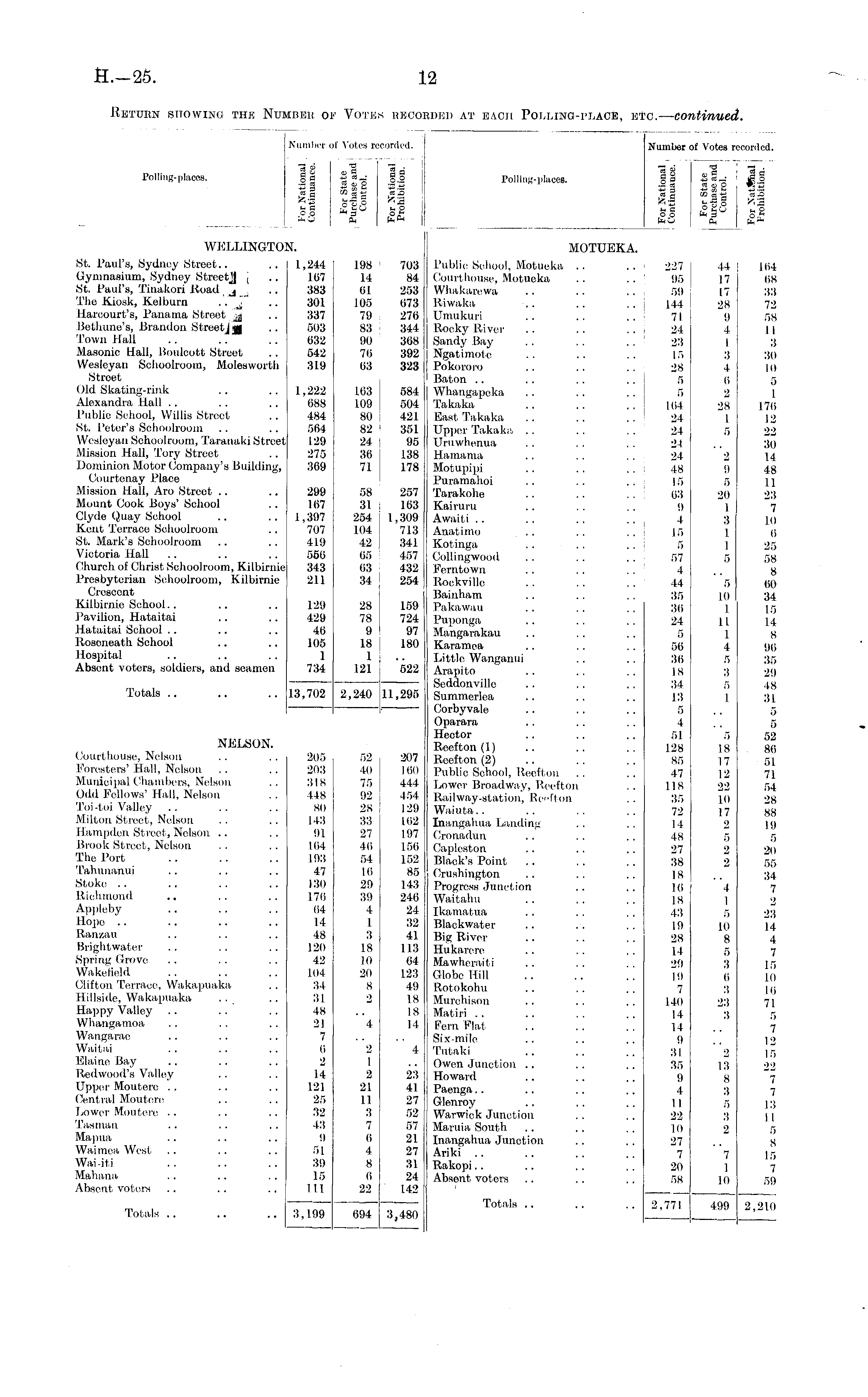 Number of Votes recorded. Number of Votes n 'corded. Polling-places. a § 2 2. a S ■IS « 2g 1-2 fc| g~3 'A3 MB P SCJ M P OO * 3 OM ftO ft ftft Polling-places. g a il 11 II t-i £ r°-° few.1 ] 45 « —! ' »il 118 ft 3 ft aio 'A3 I- H r°-° WELLINGTOI N. MOTUEKA. St. Paul's, Sydney Street.. Gymnasium, Sydney StreetJJ j St. Paul's, Tinakori Road j The Kiosk, Kelburn .. j llai'court's, Panama Street Bethune's, Brandon Streetjjj| Town Hall Masonic Hall, Bouloott Street Wesleyan Schoolroom, Molesworth Street Old Skating-rink Alexandra Hall Public School, Willis Street St. Peter's Schoolroom Wesleyan Schoolroom, Taranaki Street Mission Hall, Tory Street Dominion Motor Company's Building, Courtenay Place Mission Hall, Aro Street Mount Cook Boys' School Clyde Quay School Kent Terrace Schoolroom St. Mark's Schoolroom Victoria Hall Church of Christ Schoolroom, Kilbirnie Presbyterian Schoolroom, Kilbirnie Crescent Kilbirnie School.. Pavilion, Hataitai Hataitai School Rosoneath School Hospital Absent voters, soldiers, and seamen 1,244 198 703 167 14 84 383 01 253 301 105 073 337 79 270 503 83 : 344 632 90 368 542 70 392 319 03 323 Public School. Motucka . . . . 227 Courthouse, Motueka .. .. 95 Whakarcwa . . . . .. | 59 Riwaka .. . . .. 144 Umiikiiri .. . . .. 71 Rocky River .. . . .. 24 Sandy Bay . . . . . , 23 Ngatimotc .. .. . . 15 Pokororo .. .. .. 28 Baton .. . . . . . . 5 Whatigapoka . . .. .. 5 Takaka . . . . . . ||>( Hast Takaka .. .. .. 24 Upper Takaka .. .. .. 24 I'm w henna . . . . , . 24 llamaiua . . . . . . ! 24 Motupipi .. . . . . | 48 Puramahoi .. .. .. j 15 Tarakohe . . . . .. 03 Kairuru . . . . . . 0 Awail i . . . . . . . . 4 Anatimo .. .. .. |5 Kotinga .. .. .. 5 Collingwood . . . . . . 57 Ferntowu .. . . .. 4 Rookvillo .. .. .. ; 44 Bainham .. .. .. 35 Pakawau .. . . . . 36 Puponga .. .. .. 24 Mangarakau .. .. .. 5 Karamea .. . . . . 50 Little Wanganui . . . . 30 Arapito . . . . . . Is Seddonvillo . . . . . . 34 Summerlea .. . . . . 13 Corbyvale .. .. .. 5 Oparara .. . . . . 4 Hector .. . . . . 51 Reefton (1) .. .. .. 128 Reefton (2) .. . . . . 85 Public School, Reefl 011 .. .. 47 Lower Broadway, Reefton .. 118 Railway-station, Bell on .. 35 Waiuta.. .. .. .. 72 Inangahiia Landing .. .. II Cronadun .. . . .. 4S Capleston .. .. .. 27 Black's Point .. .. .. 3S Criishington .. .. .. 18 Progress Junction .. .. 10 Waitahu .. .. .. is [kamatua .. .. .. 43 Blackwater .. . . . . |9 Big River .. .. .. 28 Hiikarei'e . . . . . . p| Mawherail i .. .. .. 29 Globe Hill .. .. |<) Rotokohu . . . . . . 7 Murchison . . . . . . 140 Mafiri . . .. . . . . 14 Fern Flat .. .. .. 14 Six-mile .. .. .. <| Tutaki .. .. .. ;{| Owen Junction .. .. . . 35 Howard .. .. . . 9 Paenga.. .. .. .. 4 Glenroy .. . . .. 11 Warwick Junction . . .. 22 Maruia South . . , . . . 10 Inangahiia Junction . . . . 27 Ariki .. .. . . . . 7 Rakopi.. .. .. . . 20 Absent voters .. .. . . 58 44 17 17 28 9 4 1 3 4 0 2 28 1 5 104 OS 33 72 58 II 3 30 Totals NELSON. Courthouse, Nelson Foresters' Hall, Nelson Municipal Chambers, Nelson Odd Fellows' Hall, Nelson Toi-foi Valley Milton Street, Nelson Hampden Street, Nelson .. Brook Street. Nelson The Port Tahunanui Stoke Richmond Appleby Hope Ran/.au Brightwater Spring Grove Wakefield Clifton Terrace, Wakapuaka Hillside, Wakapuaka Happy Valley Whangamoa Wangarae Waitai Blaine Bay Redwood's Valley Upper Moutere Central Moutere Lower Moutere Tasman 1,222 103 584 688 109 504 484 80 421 564 82 351 129 24 95 275 36 138 369 71 178 299 58 257 167 31 163 1,397 254 1,309 707 104 713 419 42 341 560 65 457 343 63 432 211 34 j 254 129 28 159 429 78 724 46 9 97 105 18 180 1 1 734 121 522 13,702 205 203 318 lis SO 143 91 101 193 47 130 170 04 14 48 120 42 104 31 31 48 21 7 0 2 14 121 25 32 43 9 51 39 15 HI 2,240 52 40 75 92 28 33 27 40 54 10 29 39 4 1 3 18 10 20 8 2 11,295 207 100 444 454 129 102 197 156 152 85 143 246 24 32 41 113 04 123 49 IS 18 14 2 9 5 20 1 3 1 1 5 5 10 1 II I 4 5 3 5 I 5 18 17 12 22 10 17 o 5 2 2 10 5 I 170 12 22 30 14 48 II 23 7 10 0 25 58 8 (id 34 15 II 8 90 35 29 ■IS 31 5 5 52 SO 51 71 54 28 88 19 5 20 55 34 7 o 23 14 4 7 15 10 10 71 5 7 12 15 22 7 7 13 I! 5 S 15 7 59 ! •• ■1 l 10 8 5 3 0 3 23 3 4 2 I 2 21 11 3 7 0 4 8 0 22 4 23 41 27 52 57 21 27 31 24 142 2 13 8 3 5 3 2 Mapua Waimea West Wai-iti Mahana Absent voters 7 1 10 Totals Totals .. .. .. 2,771 499 2,210 3,199 694 3,480