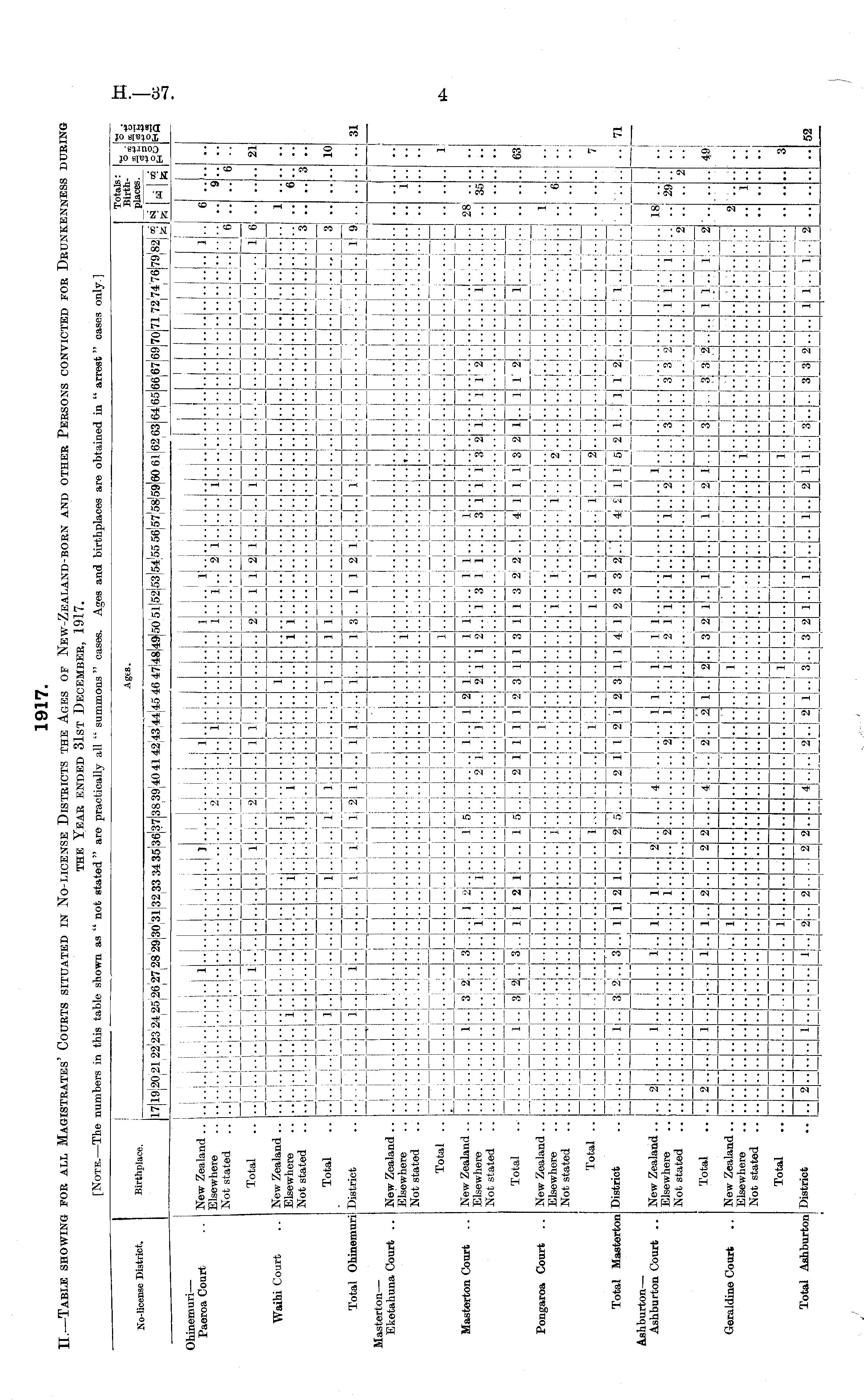 1917. II.-Table showing for all Magistrates' Courts situated in No-license Districts the Ages of New-Zealand-born and other Persons convicted for Drunkenness during the Year ended 31st December, 1917.