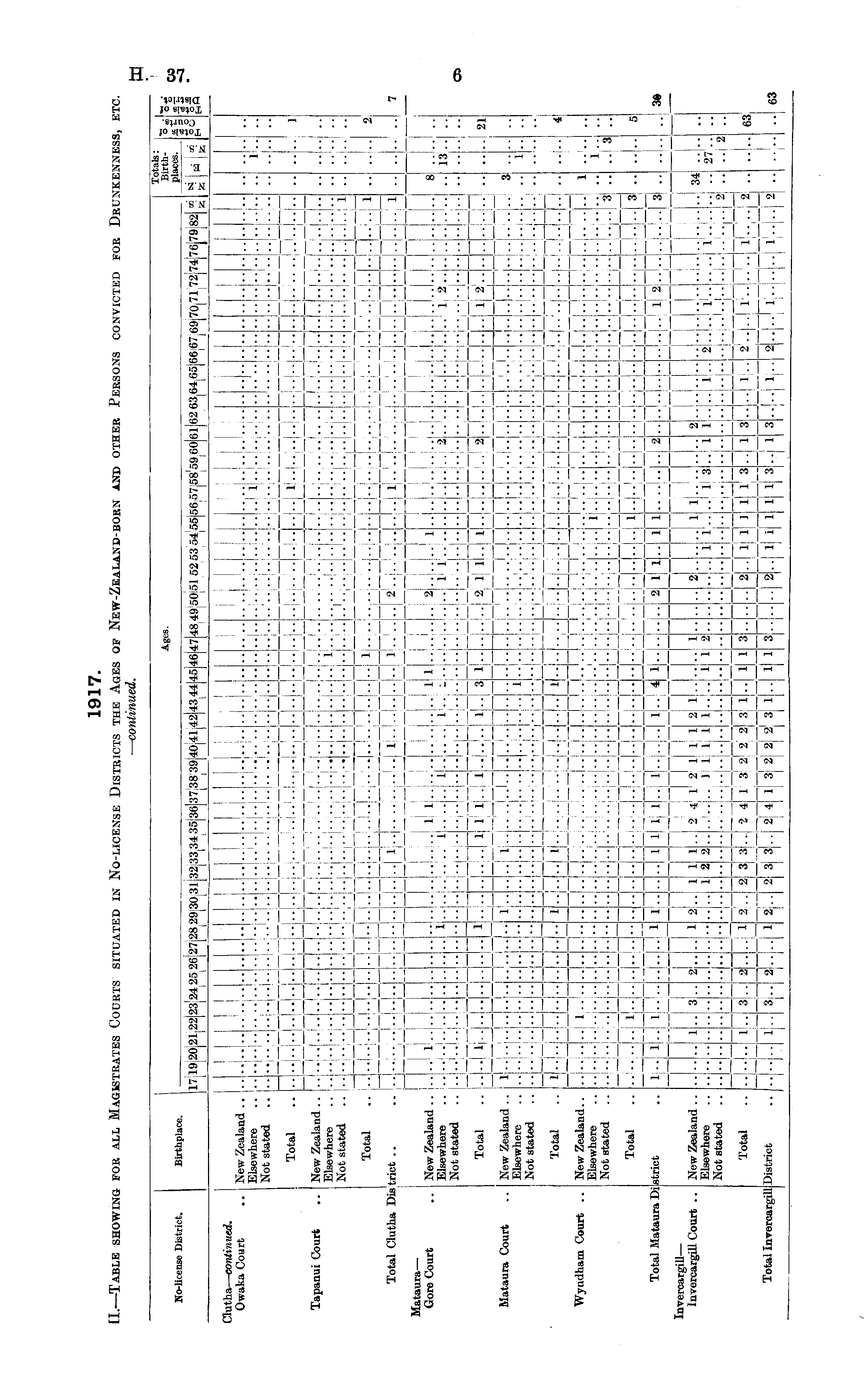 1917. II.—Table showing for all Magistrates Courts situated in No-license Districts the Ages of New-Zealand-born and other Persons convicted for Drunkenness, etc. — continued.