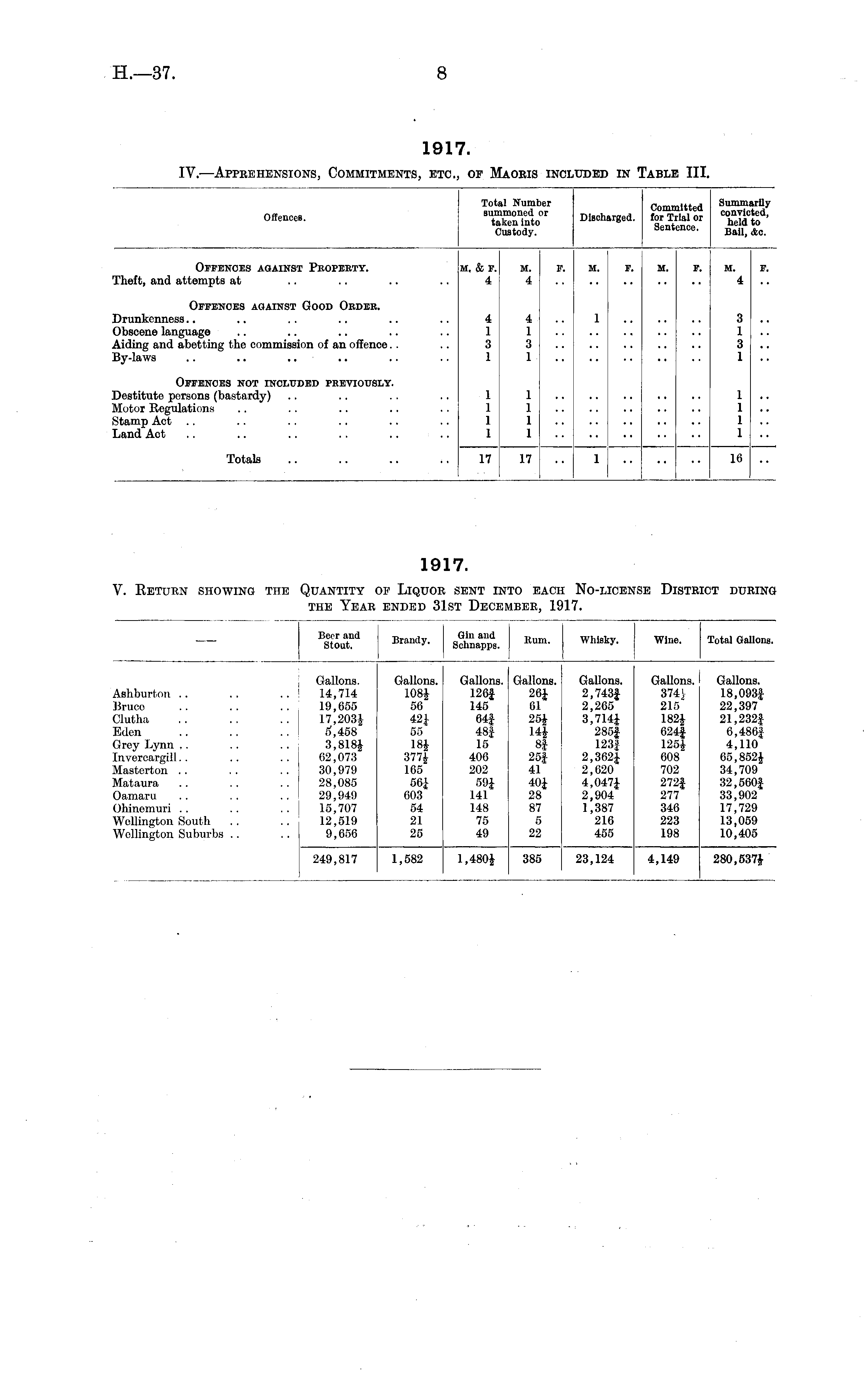 1917. IV. —Apprehensions, Commitments, etc., of Maoris included in Table III.