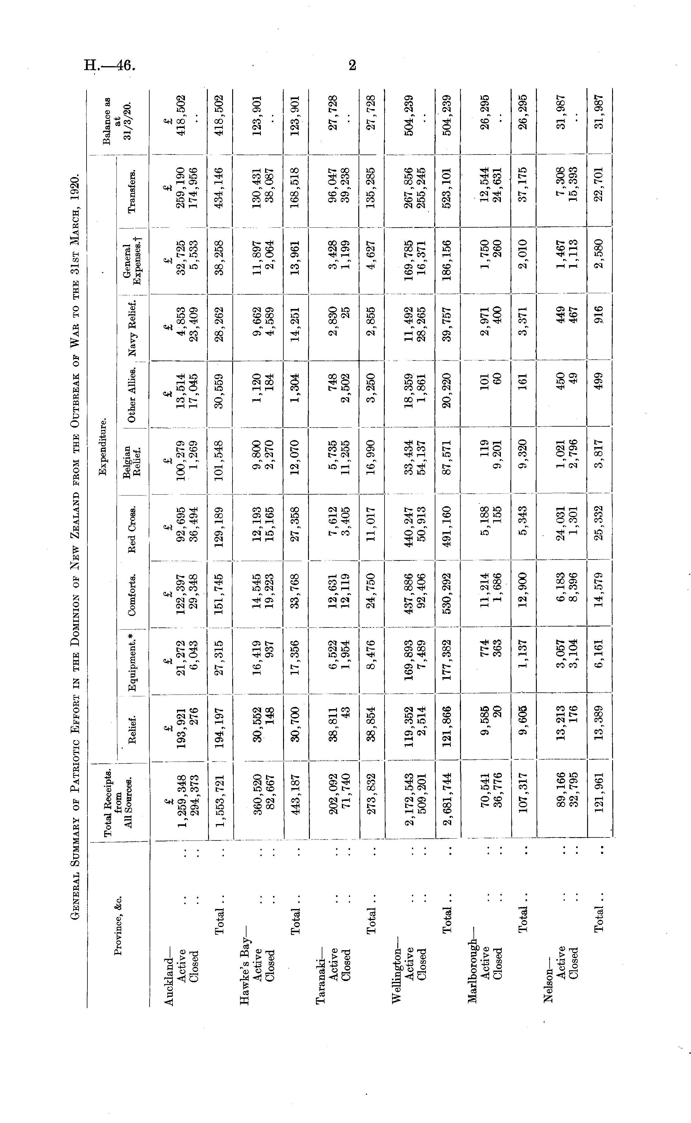 General Summary of Patriotic Effort in the Dominion of New Zealand from the Outbreak of War to the 31st March, 1920.