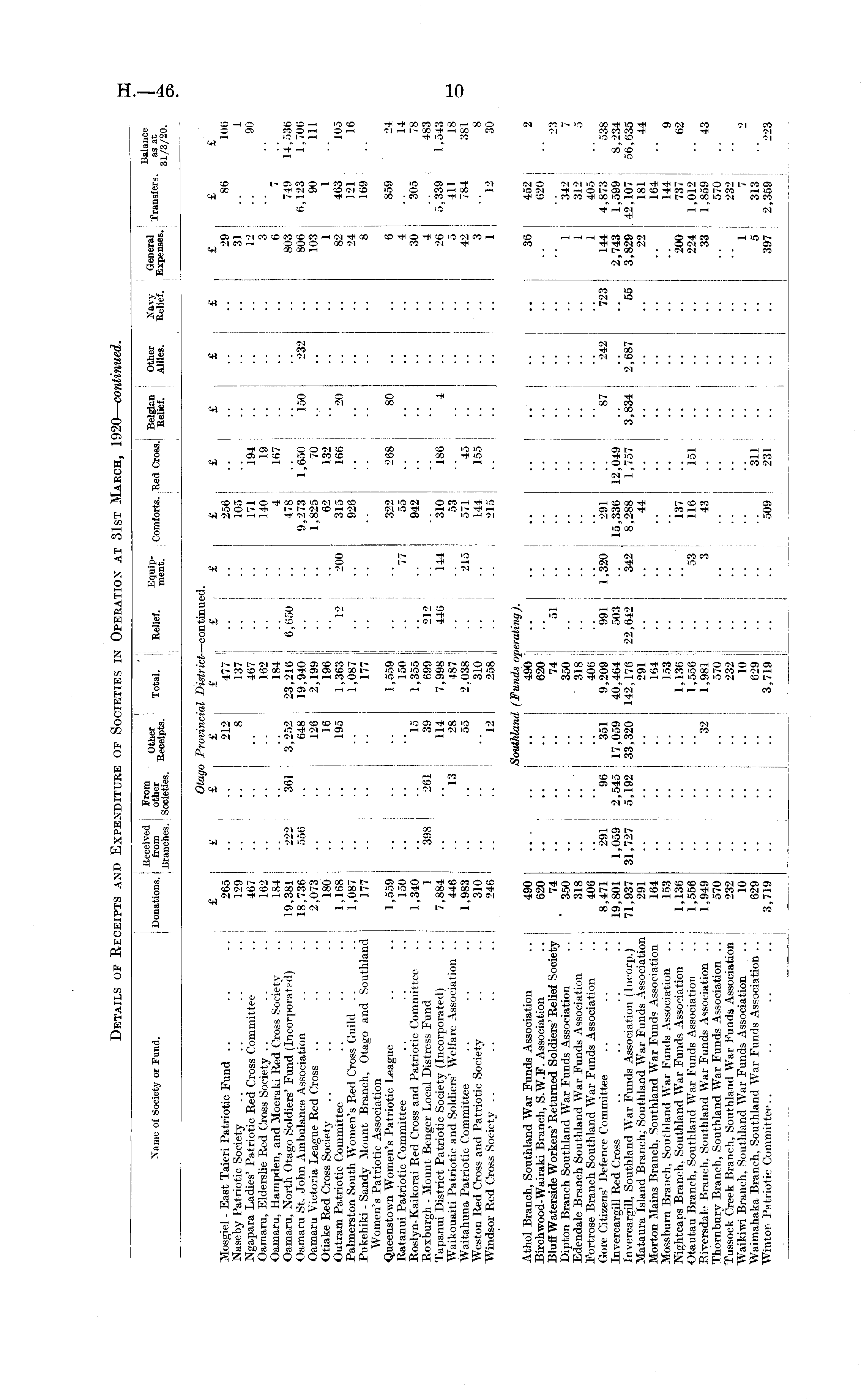 Name of Society or Fund. I Beceived From „,. Donations. I from other t>" „, L .Branches. Societies. "ece^Total. |i Belie,, j S; Comforts. Bed Cross.] ™$£ | <*& ' fiS. T — -- £ Mosgiel - East Taieri Patriotic Fund .. .. .. 265 Naseby Patriotic Society .. .. .. .. 129 Ngapara Ladies' Patriotic Red Cross Committee .. 467 ' Oamaru, Elderslie Red Cross Society .. .. .. 162 : Oamaru, Hampden, and Moeraki Red Cross Society .. 184 i Oamaru. North Otago Soldiers' Fund (Incorporated) .. 19,381 I Oamaru St. John Ambulance Association .. .. 18,736 Oamaru Victoria League Red Cross .. .. .. 2,073 Otiake Red Cross Society .. .. .. .. 180 Outram Patriotic Committee .. .. .. 1,168 Palmerston South Women's Red Cross Guild .. .. 1,087 Pukehiki - Sandy Mount Branch, Otago and Southland 177 Women's Patriotic Association Queenstown Women's Patriotic League .. .. 1,559 Ratanui Patriotic Committee .. .. .. 150 Roslyn-Kaikorai Red Cross and Patriotic Committee .. 1,340 Roxburgh - Mount Benger Local Distress Fund .. 1 Tapanui District Patriotic Society (Incorporated) .. 7,884 Waikouaiti Patriotic and Soldiers' Welfare Association .. 446 Waitahuna Patriotic Committee .. .. .. 1,983 Weston Red Cross and Patriotic Society .. .. 310 Windsor Red Cross Society .. .. .. .. 246 j Otago Provincial District —continued. £ £ £ £ £ | 212 477 ! 8 137 .. 467 ;.. 162 I 184 ! 222 361 3,252 23,216 ; 6,650 556 .. 648 19,940 126 2,199 16 196 195 1,363 12 1,087 177 1,559 150 15 1,355 398 261 39 699 212 114 7,998 446 13 28 487 .. 55 2.038 310 .. 12 258 £ £ 256 105 171 140 4 478 9,273 1,825 62 200 315 926 322 77 55 942 144 310 53 215 571 144 215 £ 194 19 167 1,650 70 132 166 ! 268 £ , £ 150 232 20 80 £ £ £ 29 86 31 12 3 6 7 ! 803 749 806 6,123 103 90 ] 1 1 82 463 24 121 ! 8 169 j 6 859 ! 4 30 305 4 26 5,339 5 411 42 784 3 1 12 £ 106 90 14,536 1,706 111 105 16 24 14 78 483 1,543 18 381 8 30 .. 186 4 45 155 Athol Branch, Southland War Funds Association .. 490 Birchwood-Wairaki Branch, S.W.F. Association .. 620 Bluff Waterside Workers' Returned Soldiers' Relief Society 74 Dipton Branch Southland War Funds Association .. 350 Edendale Branch Southland War Funds Association .. 318 Fortrose Branch Southland War Funds Association .. 406 Gore Citizens' Defence Committee .. .. .. 8,471 Invercargill Red Cross .. .. .. .. 19,801 Invercargill, Southland War Funds Association (Incorp.) 71,937 Mataura Island Branch: Southland War Funds Association 291 Morton Mains Branch, Southland War Funds Association 164 Mossburn Branch. Southland War Funds Association .. 153 Nightcaps Branch. Southland War Funds Association .. 1,136 Otautau Branch, Southland War Funds Association .. 1,556 Riversdale Branch. Southland War Funds Association .. 1,949 Thornbury Branch, Southland War Funds Association .. 570 Tussock Creek Branch, Southland War Funds Association 232 AVaikiwi Branch, Southland War Funds Association ... 10 Waimahaka Branch, Southland War Funds Association .. 629 Wintor Patriotic Committee.. .. .. .. 3,719 Southland (Funds operating). .. 490 620 .. 74 51 350 .. .. .. 318 406 291 96 351 9,209 991 1,059 2,545 17,059 40,464 503 31,727 5,192 33,320 142,176 22,642 291 164 153 1,136 1,556 32 1,981 570 232 10 629 3,719 1,320 291 15,336 342 8,288 44 '.'. 137 53 116 3 43 .'. 509 •• 12,049 1,757 ±51 .. 87 242 3,834 2,687 723 55 36 I 452 i 620 | 1 342 1 312 I 1 405 | 144 4,873 | 2,743 1,599 . 3,829 42,107 22 181 164 144 200 737 224 1,012 33 1.859 570 ' 232 1 7 5 313 397 2,359 2 23 7 5 538 8,234 56,635 44 9 62 43 223 .. .. .. 311 231 ; :■: i ::