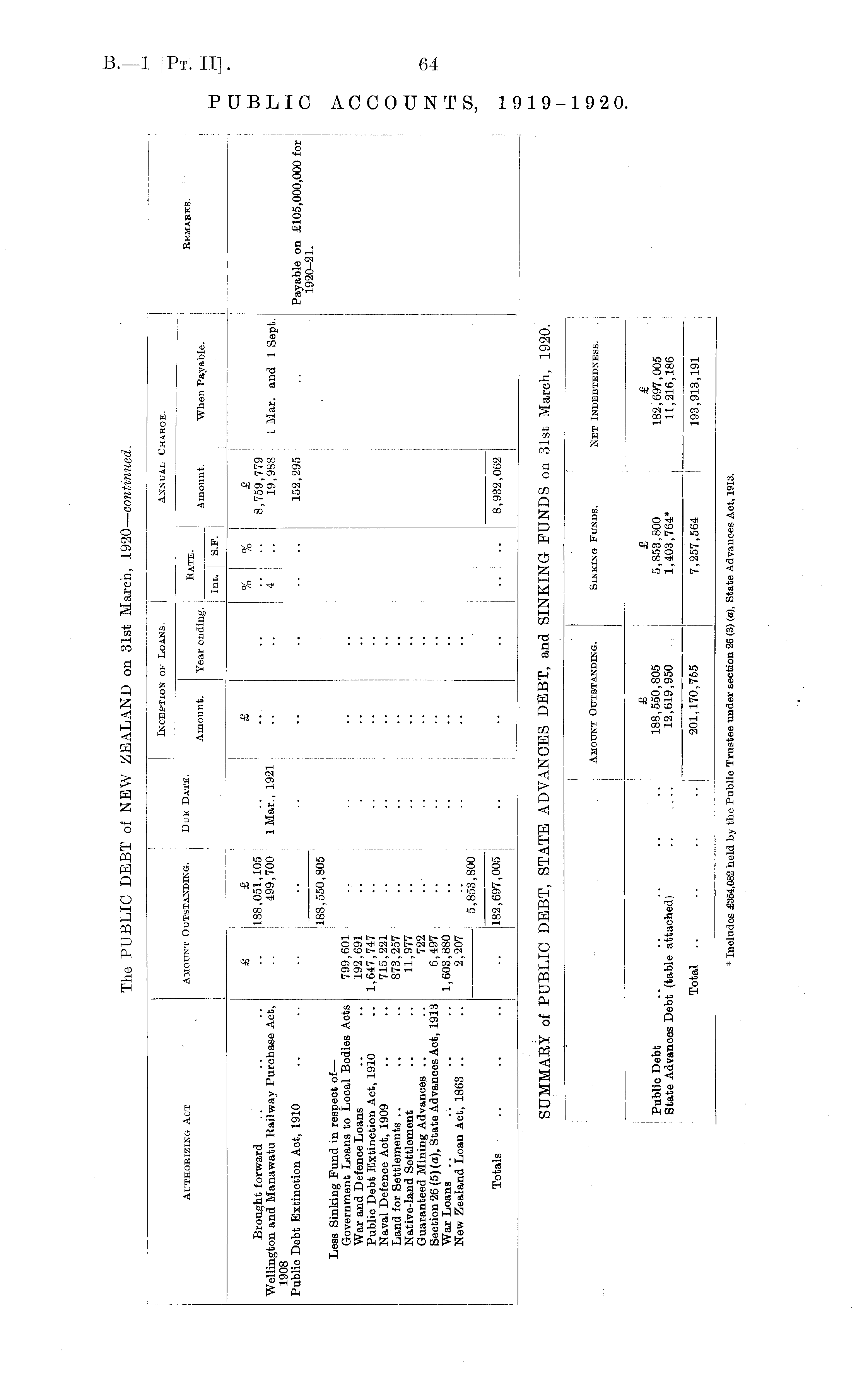 SUMMARY of PUBLIC DEBT, STATE ADVANCES DEBT, and SINKING FUNDS on 31st March, 1920.
