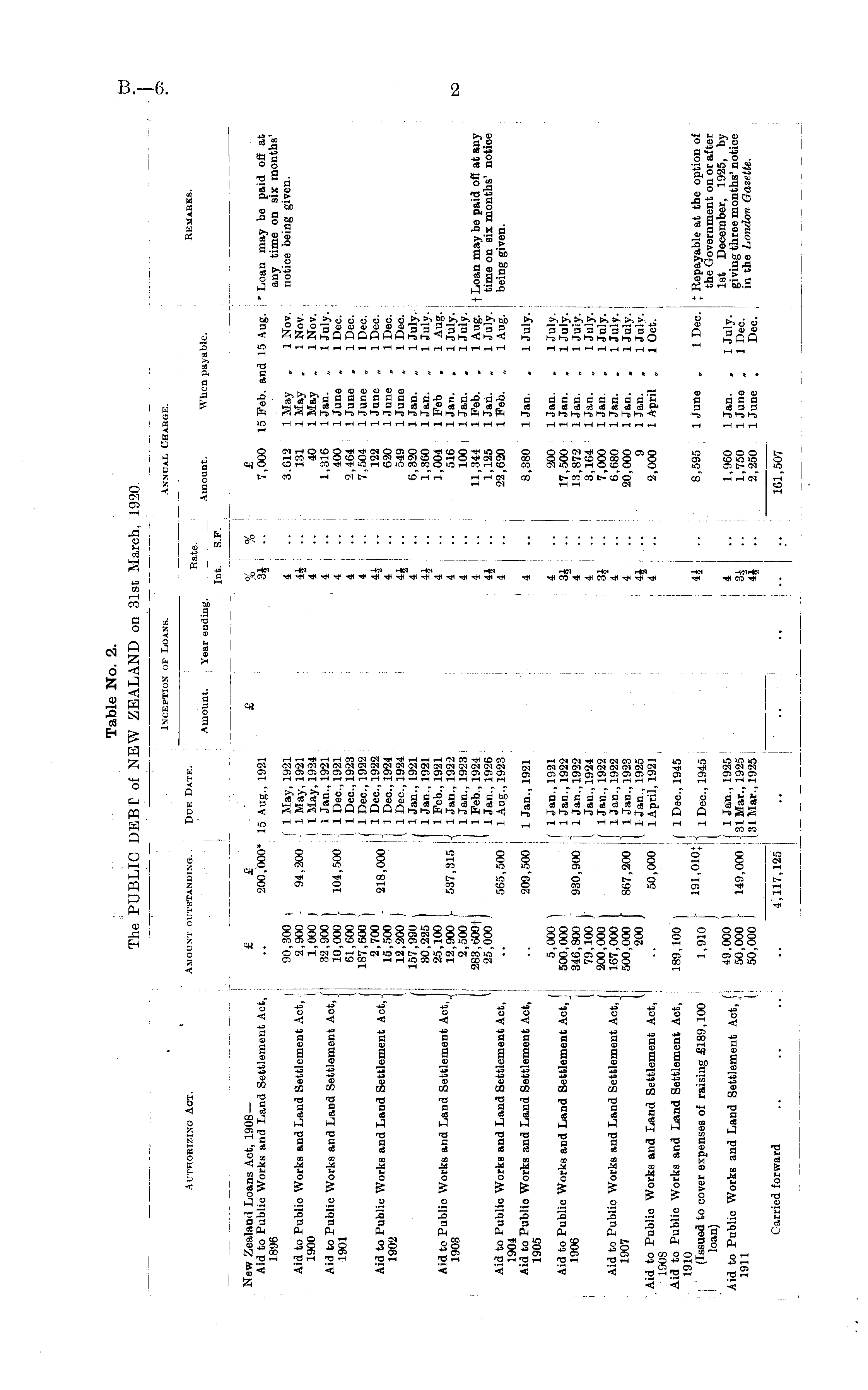 Table No. 2. The PUBLIC DEBT of NEW ZEALAND on 31st March, 1920.