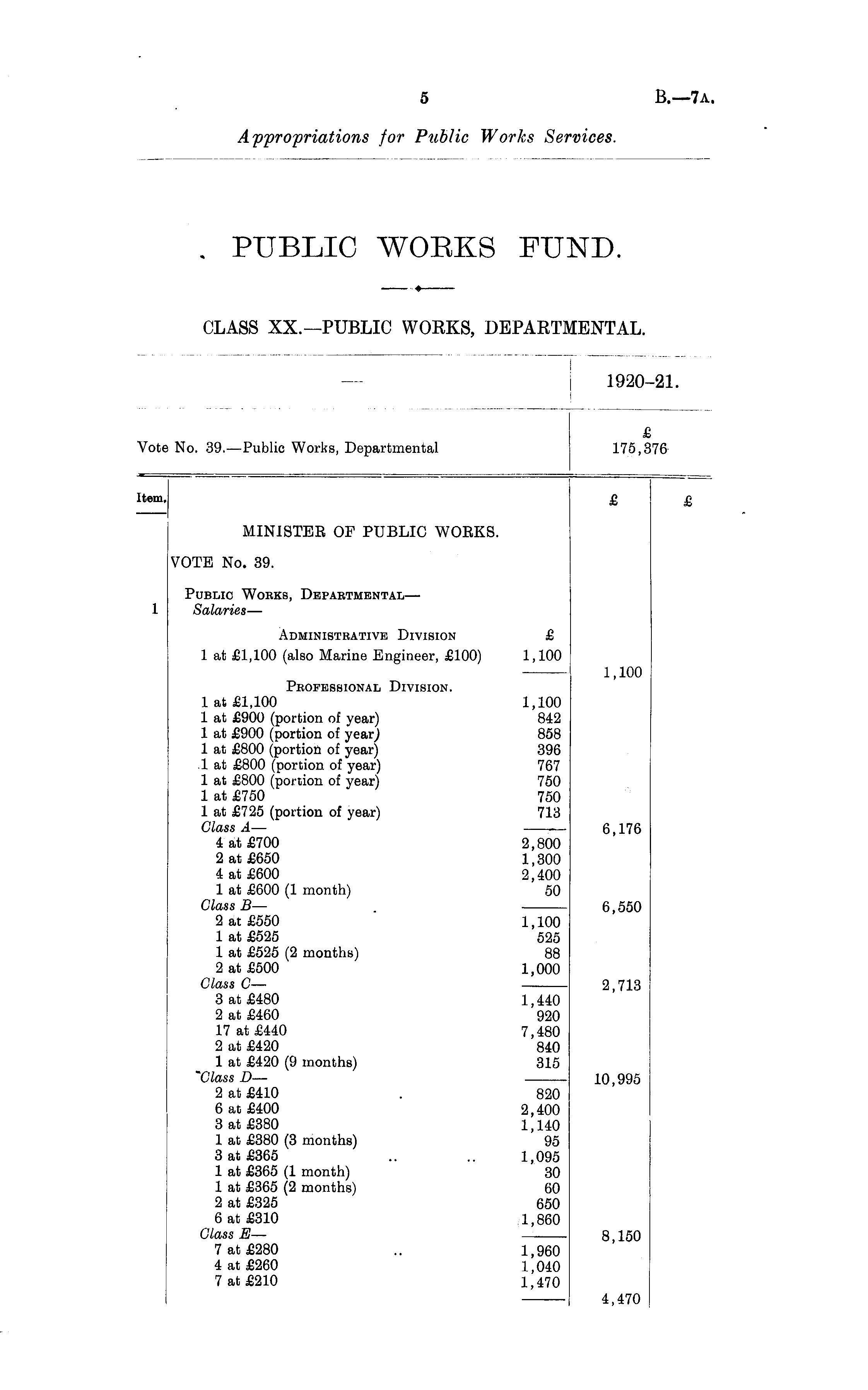 CLASS XX.—PUBLIC WORKS, DEPARTMENTAL.