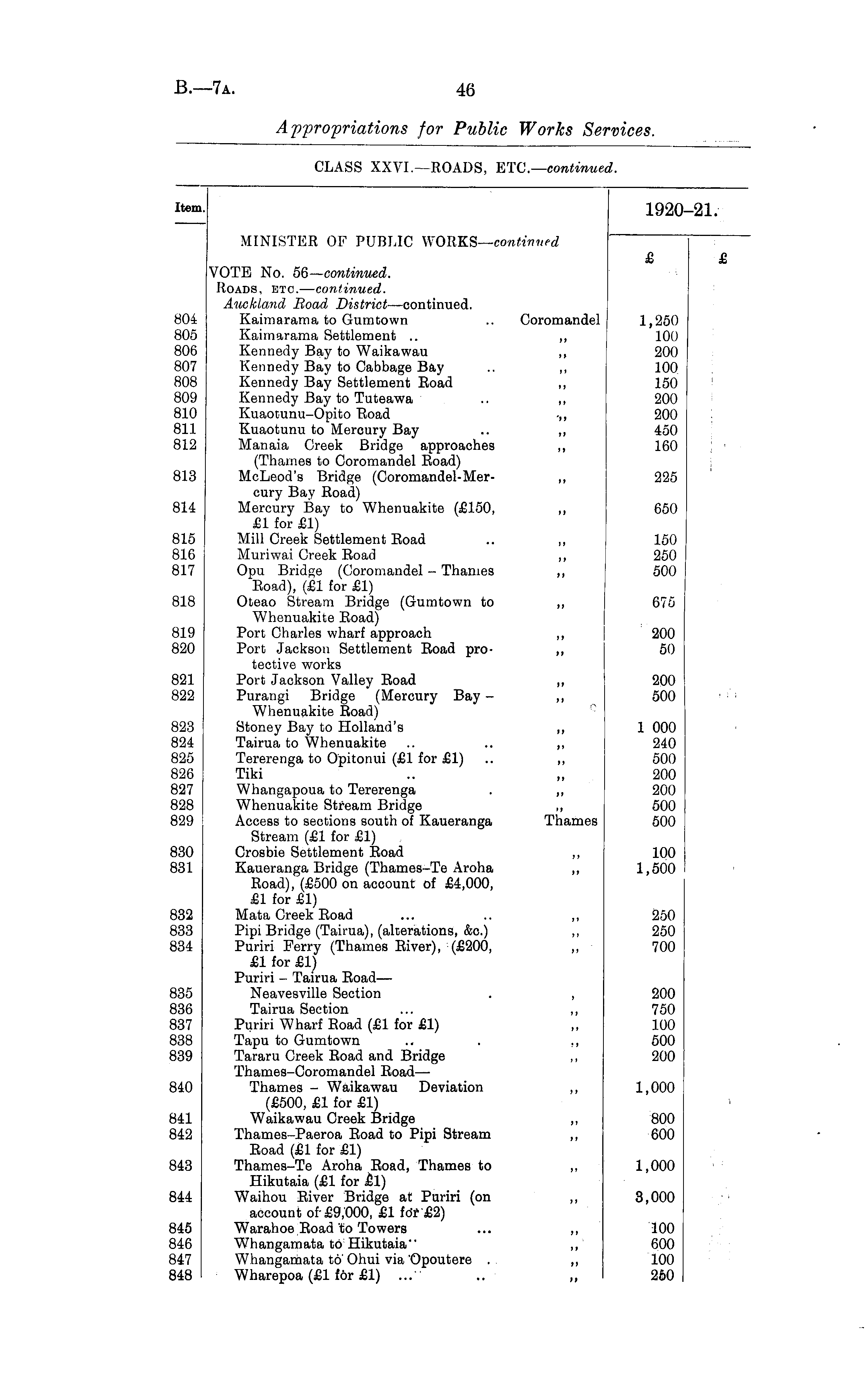 Item. 1920-21. MINISTER OF PUBLIC WORKS—continued VOTE No. 56— continued. Roads, etc. — continued. Auckland Road District —continued. Kaimarama to Gumtown .. Coromandel Kaimarama Settlement .. ,, Kennedy Bay to Waikawau ,, Kennedy Bay to Cabbage Bay .. ,, Kennedy Bay Settlement Eoad ,, Kennedy Bay to Tuteawa .. ,, Kuaotunu-Opito Road ,, Kuaotunu to Mercury Bay .. ,, Manaia Creek Bridge approaches ,, (Thames to Coromandel Road) McLeod's Bridge (Coromandel-Mer- ,, cury Bay Road) Mercury Bay to Whenuakite (£150, ,, £1 for £1) Mill Creek Settlement Eoad .. ,, Muriwai Creek Road ,, Opu Bridge (Coromandel - Thames ,, Road), (£1 for £1) Oteao Stream Bridge (Gumtown to ,, Whenuakite Eoad) Port Charles wharf approach ,, Port Jackson Settlement Eoad pro- ,, tective works Port Jackson Valley Eoad ,, Purangi Bridge (Mercury Bay - ,, Whenuakite Road) Stoney Bay to Holland's „ Tairua to Whenuakite .. .. ,, Tererenga to Opitonui (£1 for £1) .. ,, Tiki Whangapoua to Tererenga . ,, Whenuakite Stream Bridge ,, Access to sections south of Kaueranga Thames Stream (£1 for £1) Crosbie Settlement Road „ Kaueranga Bridge (Thames-Te Aroha „ Road), (£500 on account of £4,000, £1 for £1) Mata Creek Eoad ... .. „ Pipi Bridge (Tairua), (alterations, &c.) ,, Puriri Ferry (Thames Eiver), (£200, £1 for £1) Puriri - Tairua Eoad— Neavesville Section . , Tairua Section ... ,, Puriri Wharf Eoad (£1 for £1) Tapu to Gumtown .. . ., Tararu Creek Eoad and Bridge „ Thames-Coromandel Road — Thames - Waikawau Deviation ,, (£500, £1 for £1) Waikawau Creek Bridge ,, Thames-Paeroa Eoad to Pipi Stream Eoad (£1 for £1) Thames-Te Aroha Eoad, Thames to ,, Hikutaia (£1 for £1) Waihou Eiver Bridge at Puriri (on „ account of £9,000, £1 for £2) Warahoe Eoad to Towers ... ,, Whangamata to Hikutaia" ,, Whangamata to Ohui via'Opoutere . - ,, Wharepoa (£1 for £1) ... £ £ 804 805 806 807 808 809 810 811 812 1,250 100 200 100 150 200 200 450 160 813 225 814 650 815 816 817 150 250 500 818 675 819 820 200 50 821 822 200 500 823 824 825 826 827 828 829 1 000 240 500 200 200 500 500 830 831 100 1,500 i;-!2 m 184 250 250 700 (35 !H(i 187 188 189 200 750 100 500 200 140 1,000 141 142 800 600 143 1,000 !44 3,000 145 146 147 148 100 600 100 250