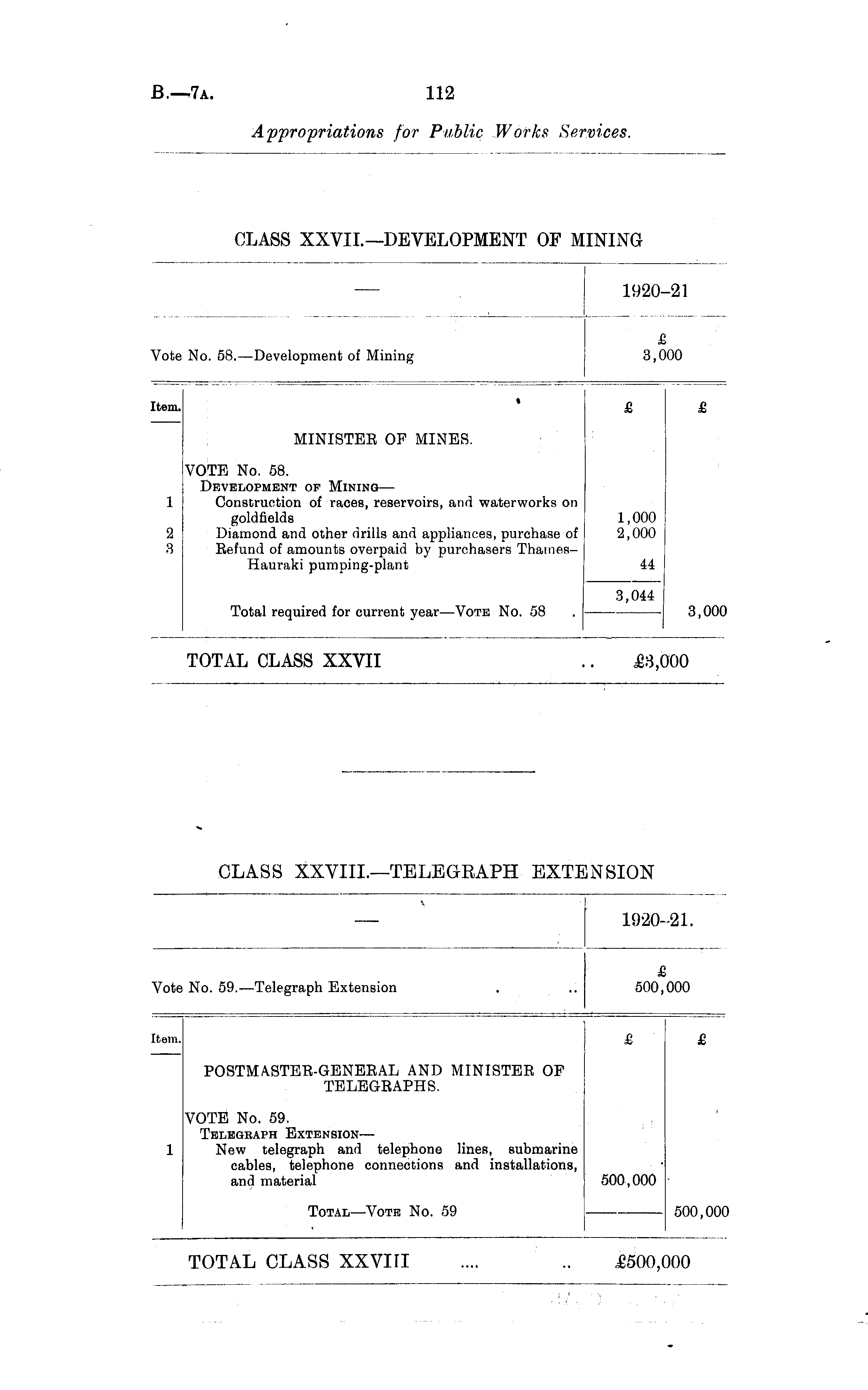 \ 1920-21. 500,000 oti No. 59.—Telegraph Extension torn. POSTMASTEE-GBNEEAL AND MINISTER OF TELEGRAPHS. VOTE No. 59, Tblbgbaph Extension— New telegraph and telephone lines, submarine cables, telephone connections and installations, and material 500,000 Total—Vote No. 59 ,000 TOTAL CLASS XXVIII £500, €0