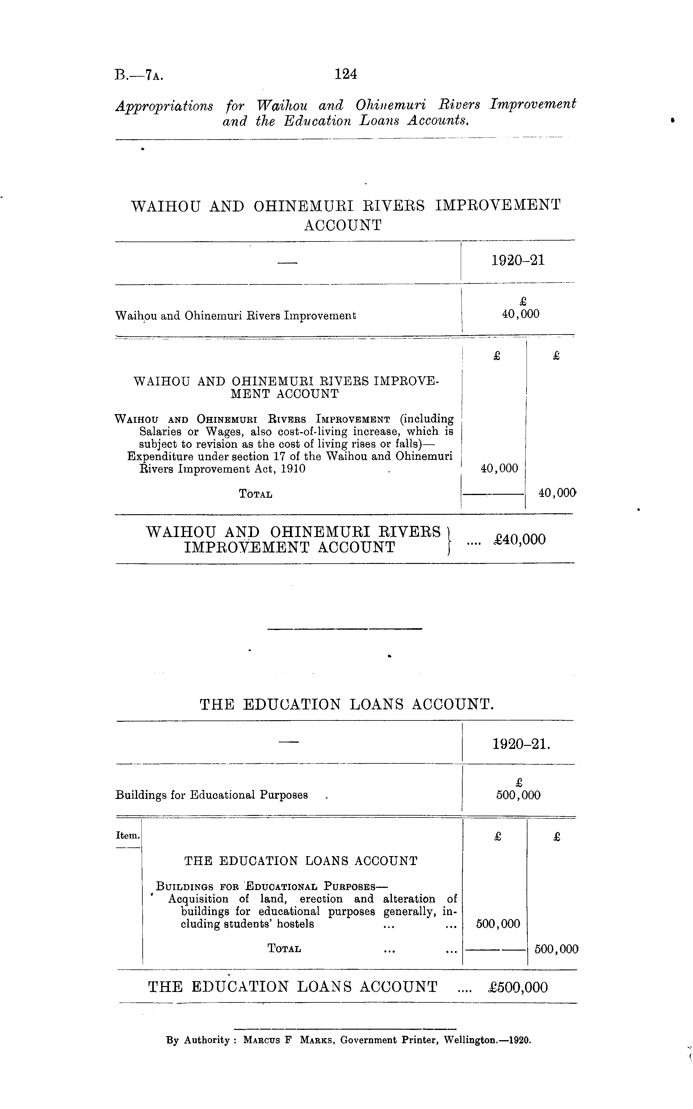 Appropriations for Waihou and Ohinemuri Rivers Improvement and the Education Loans Accounts.