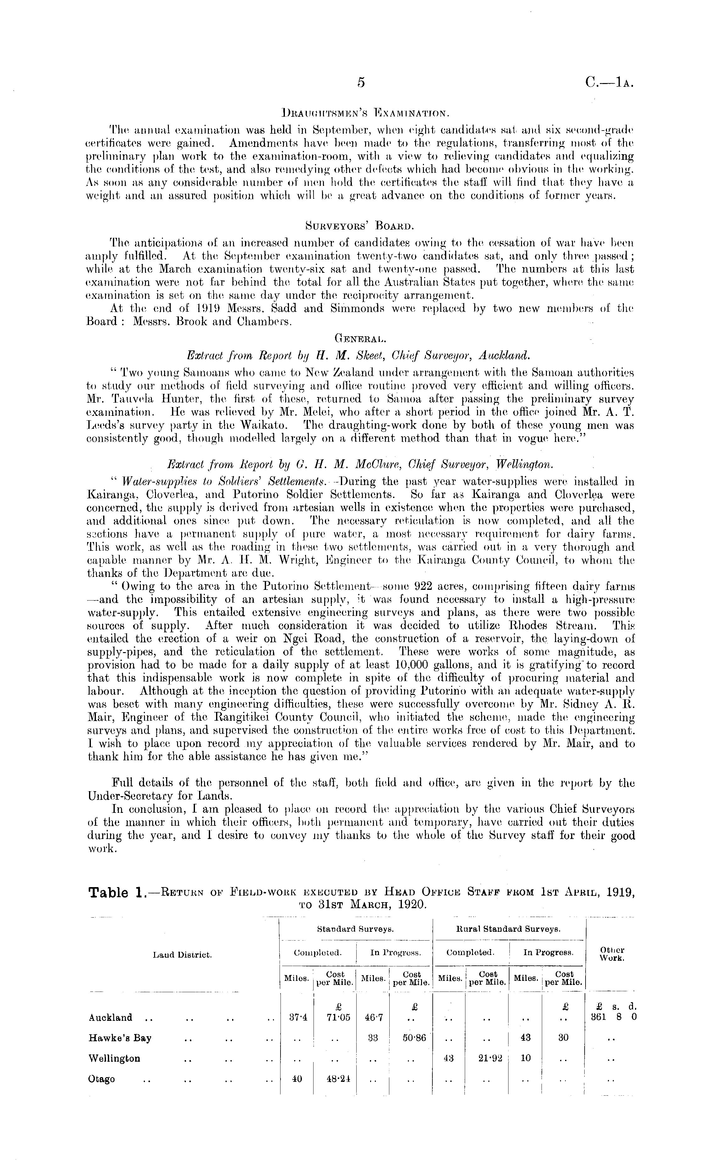 Table 1. —Return of Field-work executed by Head Office Staff from 1st April, 1919, to 31st March, 1920.