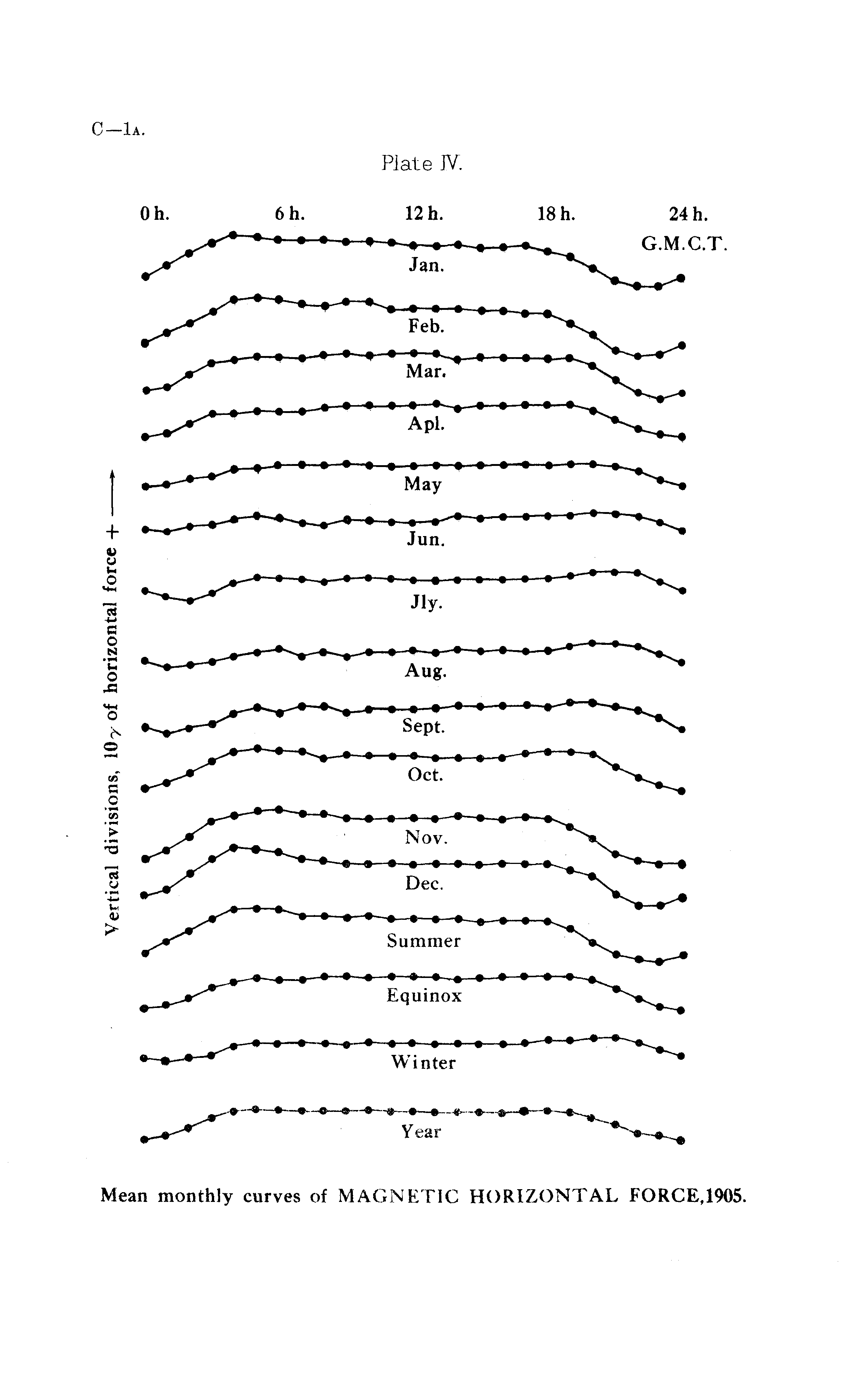 Mean monthly curves of MAGNETIC HORIZONTAL FORCE.I9OS