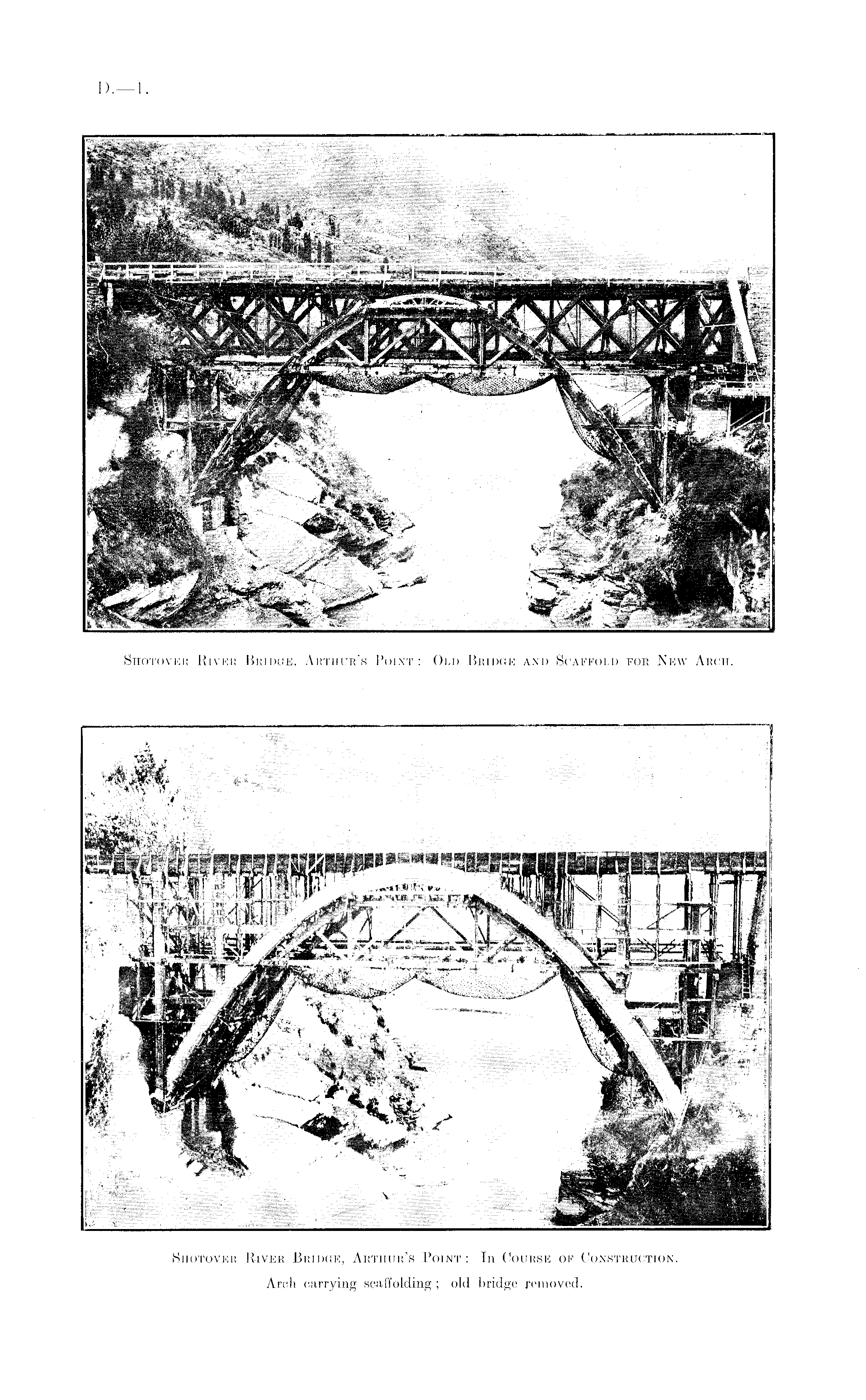 Shotover River Bridge, Arthur's Point: Old Bridge and Scaffold for New Arch.