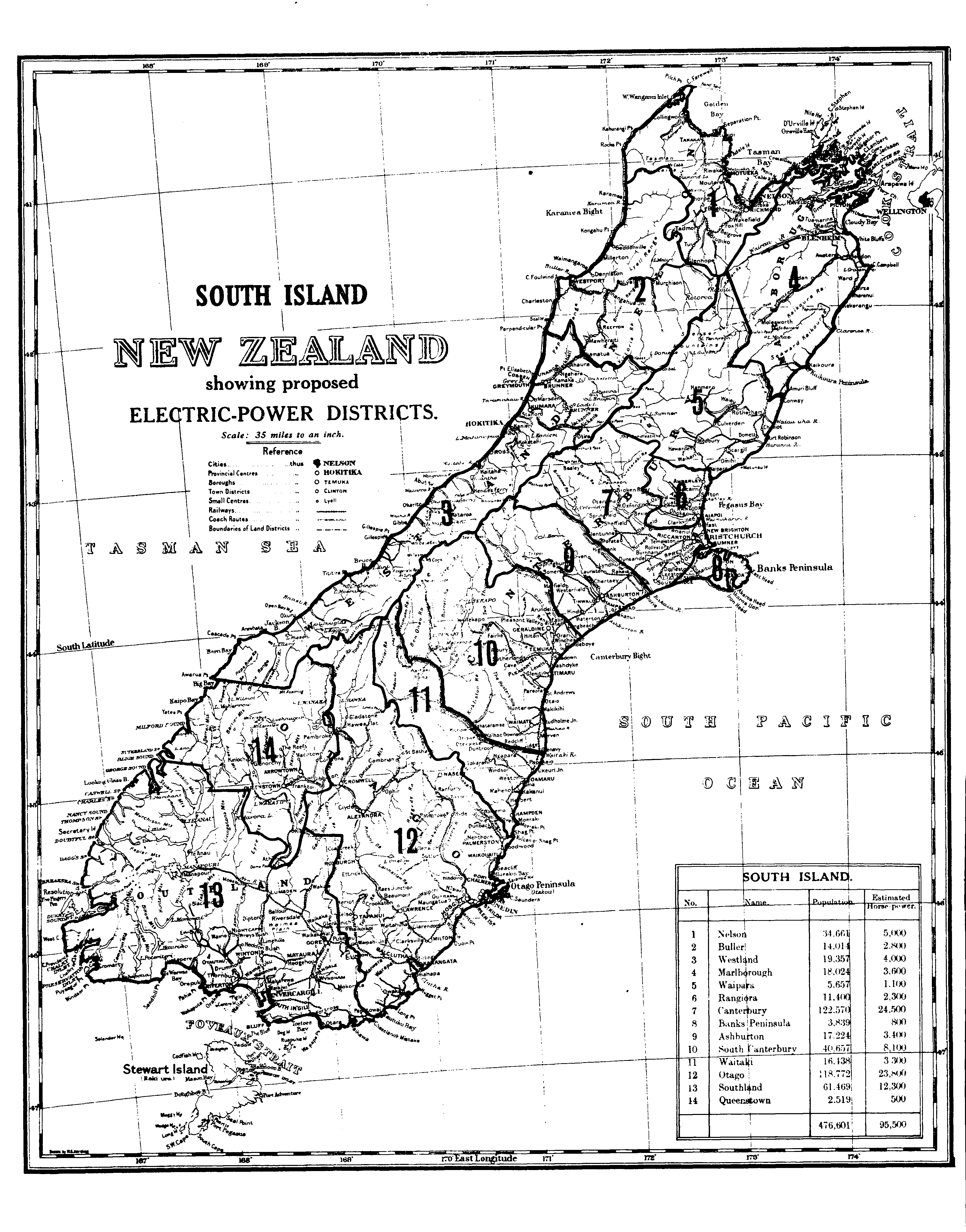 SOUTH ISLAND NEW ZEALAND showing proposed ELECTRIC-POWER DISTRICTS.