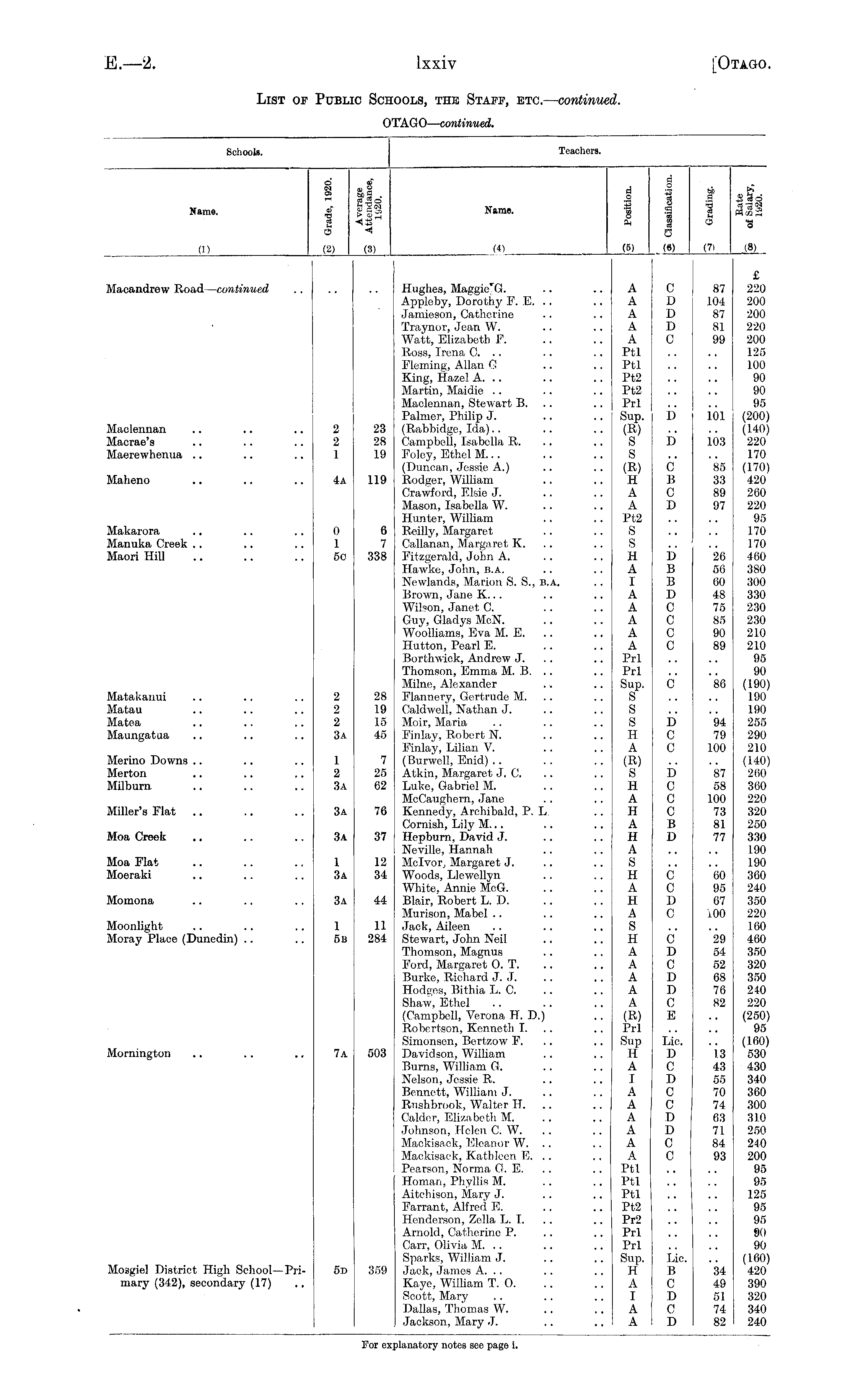 List of Public Schools, the Staff, etc. — continued. OTAGO— continued.