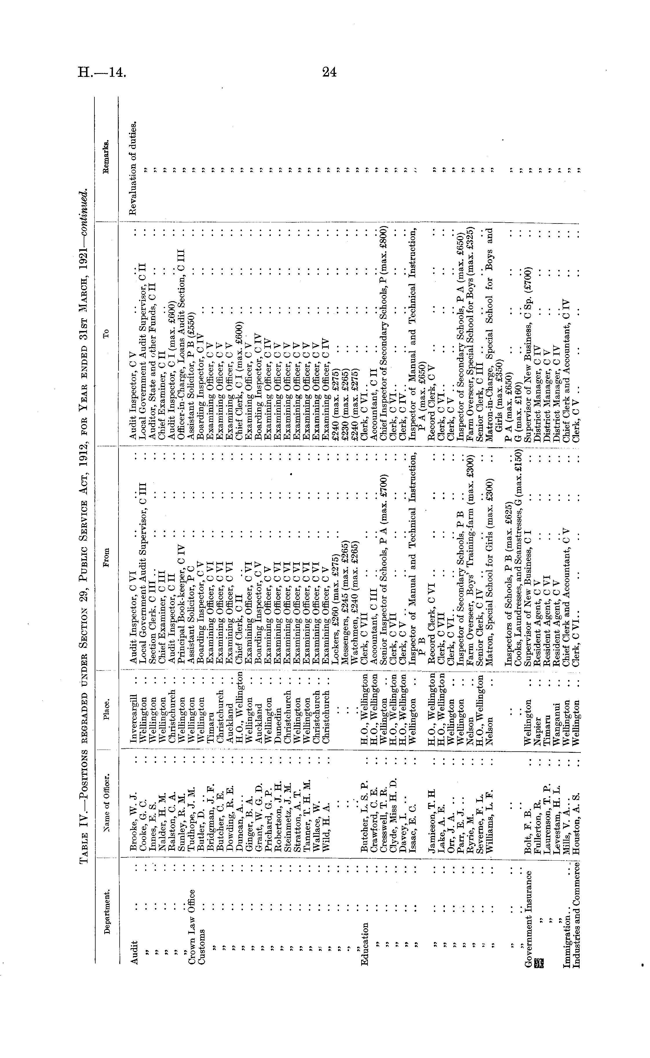 Table IV.—Positions regraded under Section 29, Public Service Act, 1912, for Year ended 31st March, 1921— continued.