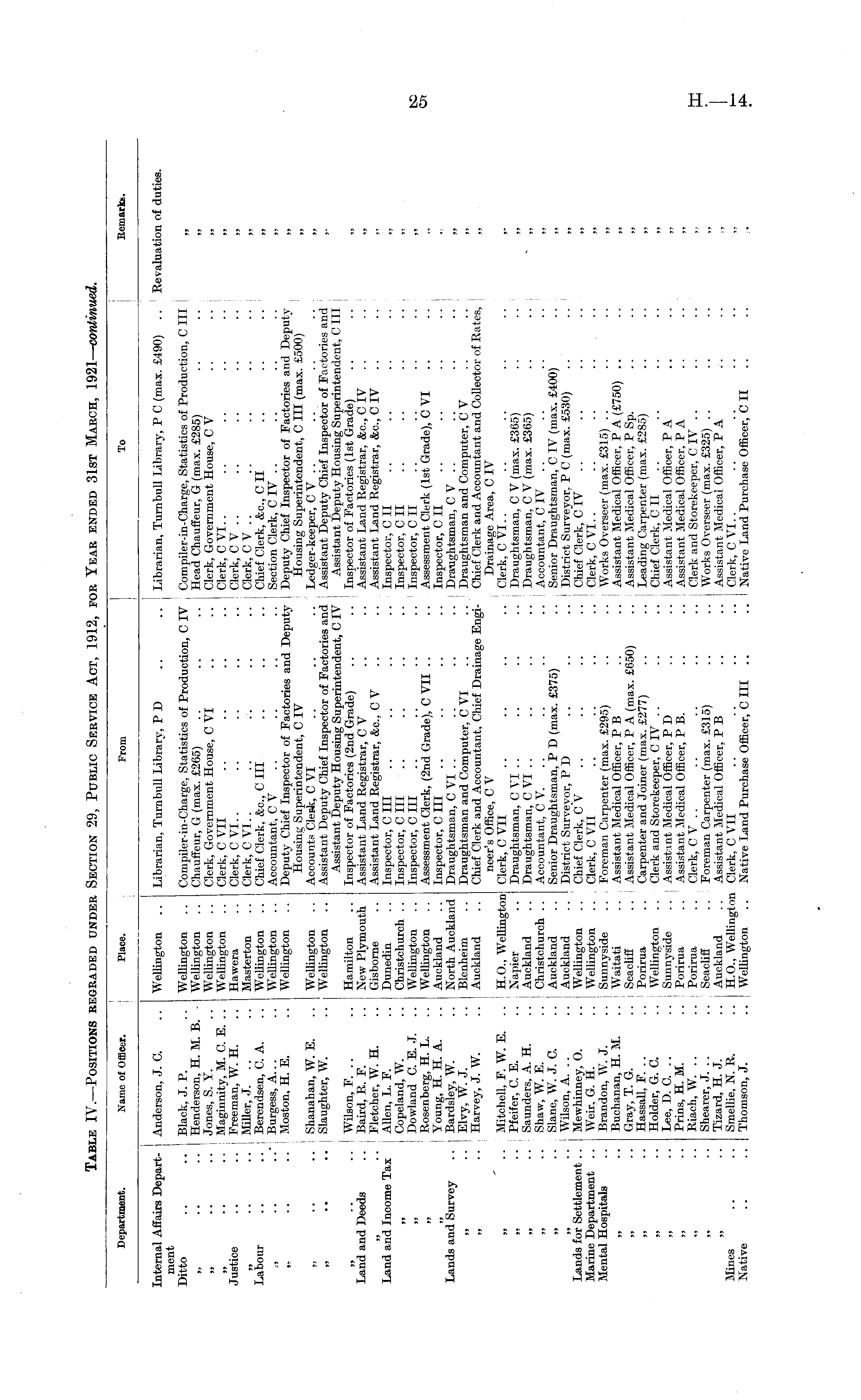 Table IV.—Positions regraded under Section 29, Public Service Act, 1912, for Year ended 31st March, 1921— continued.