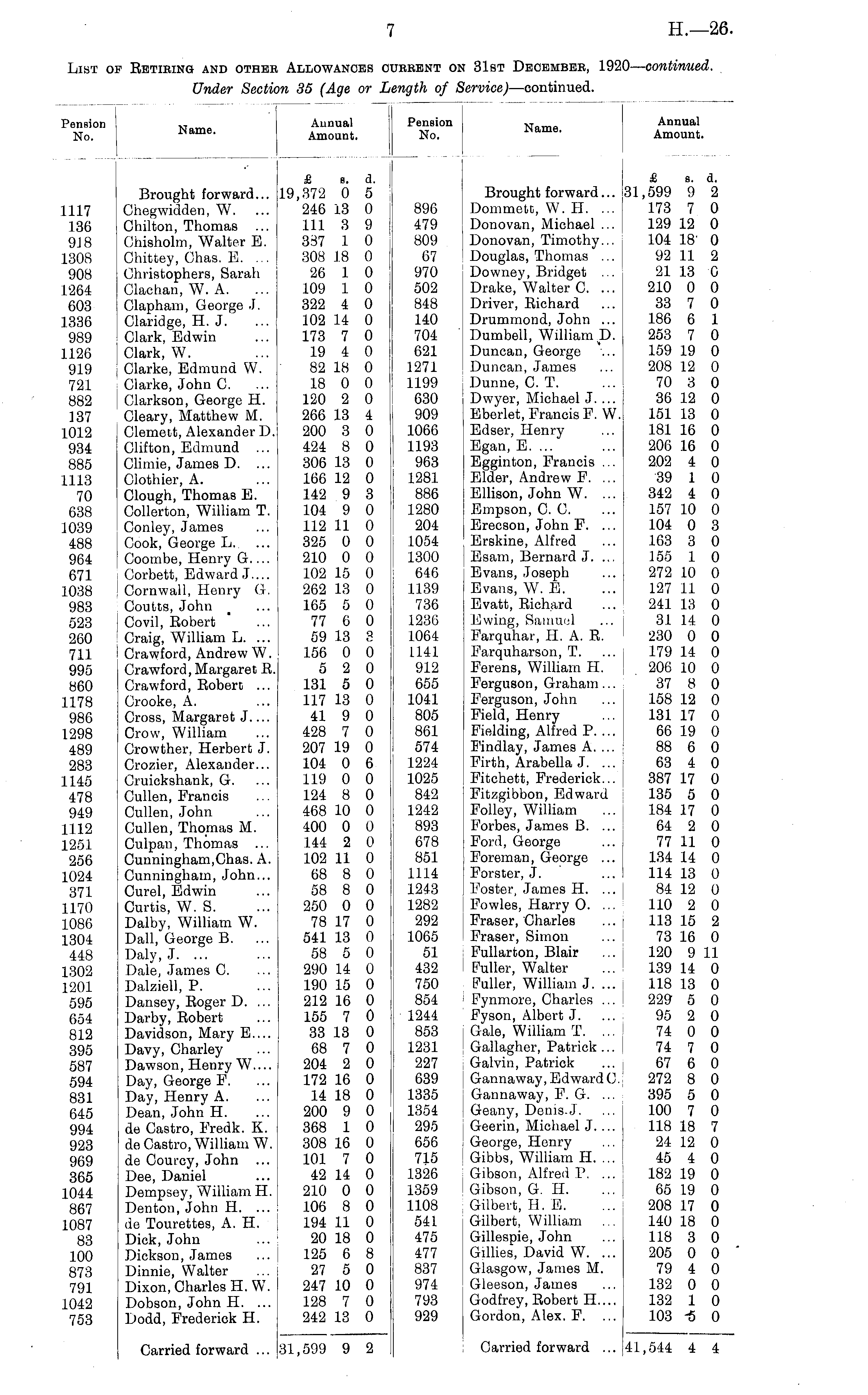 List of Retiring and other Allowances current on 31st December, 1920 — continued. Under Section 35 (Age or Length of Service) —continued.