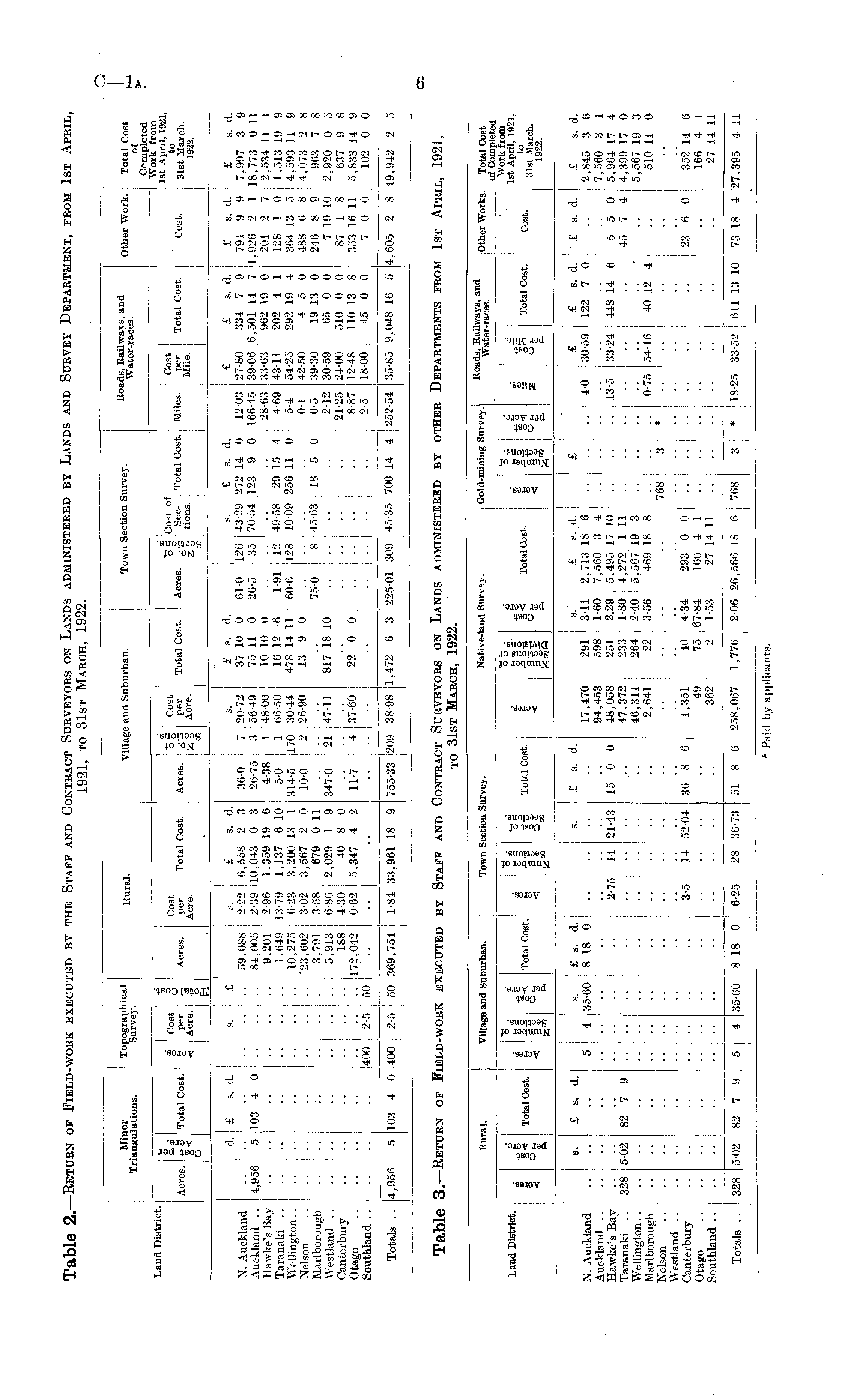Table 2. — Return of Field-work executed by the Staff and Contract Surveyors on Lands administered by Lands and Survey Department, from 1st April, 1921, to 31st March, 1922.