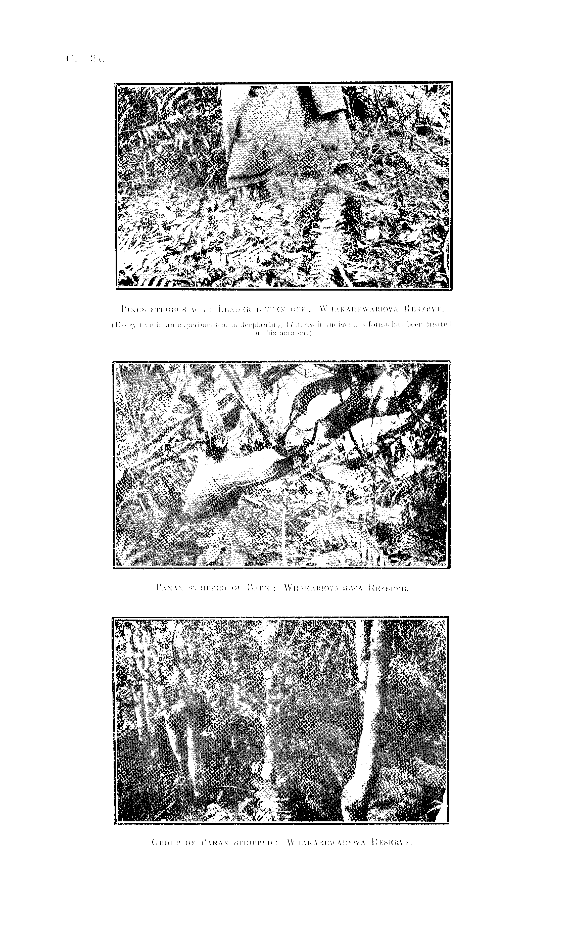 Pinus strobus with Leader bitten off: Whakarewarewa Reserve. (Every tree in an experiment of underplanting 17 acres in indigenous forest has been treated in this manner.)