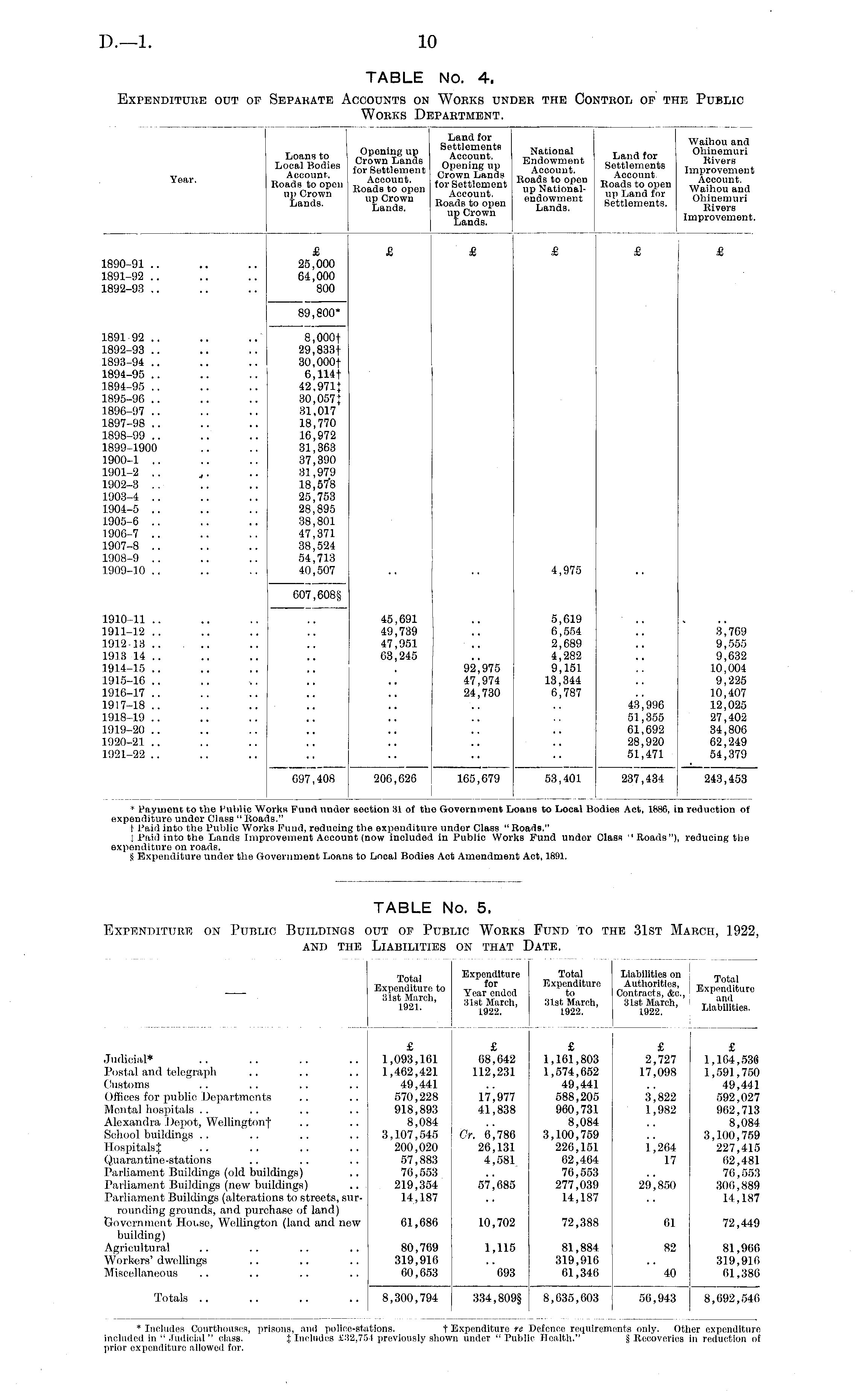 Year. Loans to Local Bodies Account. Roads to open up Crown Lands. Opening up Crown Lands for Settlement Account. Roads to open up Crown Lands. Land for Settlements Account. Opening up Crown Lands for Settlement Account. Roads to opon up Crown Lands. National Endowment Account. Roads to open up Nationalendowment Lands. Land for Settlements Account. Roads to open up Land for Settlements. "Waihou and Ohinemuri Rivers Improvement Account. Waihou and Ohinemuri Rivers Improvement. 1890-91 .. 1891-92 .. 1892-93 ,. 25,000 64,000 800 89,800* 1891 92 .. 1892-93 .. 1893-94 .. 1894-95 .. 1894-95 .. 1895-96 .. 1896-97 .. 1897-98 .. 1898-99 .. 1899-1900 1900-1 .. 1901-2 .. 1902-3 .. 1903-4 .. 1904-5 .. 1905-6 .. 1906-7 .. 1907-8 .. 1908-9 .. 1909-10 .. <f • 8,000f 29,833f 30,000f 6,114t 42,971t 30,057{ 31,017 18,770 16,972 31,363 37,390 31,979 18,57*8 25,753 28,895 38,801 47,371 38,524 54,713 40,507 607,608$ 4,975 1910-11 .. 1911-12 .. 1912-13 .. 1913 14 .. 1914-15 .. 1915-16 .. 1916-17 .. 1917-18 .. 1918-19 .. 1919-20 .. 1920-21 .. 1921-22 .. 45,691 49,739 47,951 03,245 5,619 6,554 2,689 4,282 9,151 13,344 6,787 3,769 9,555 9,632 10,004 9,225 10,407 12,025 27,402 34,800 62,249 54,379 92,975 47,974 24,730 43,996 51,355 61,692 28,920 51,471 097,408 200,626 165,679 53,401 237,434 243,453 * Payment to the Public W< expenditure under Class " Roar I Paid into the Public Work j Paid into the Lands Imp] expenditure on roads. S Expenditure under the G< orks Fund under 3s." is Fund, roducinj rovement Accoui section HI of tb< e Government Iii joaiis to Local 11< sdies Act, 1886, in reduction of ; the expcnditur it (now included ■o under Class " 1 1 in Public Worl Roads." •ks Fund under Class "Roads"), reducing the overnmont Loam ; to Local liodieg s Act Amendmen it Act, 1891.