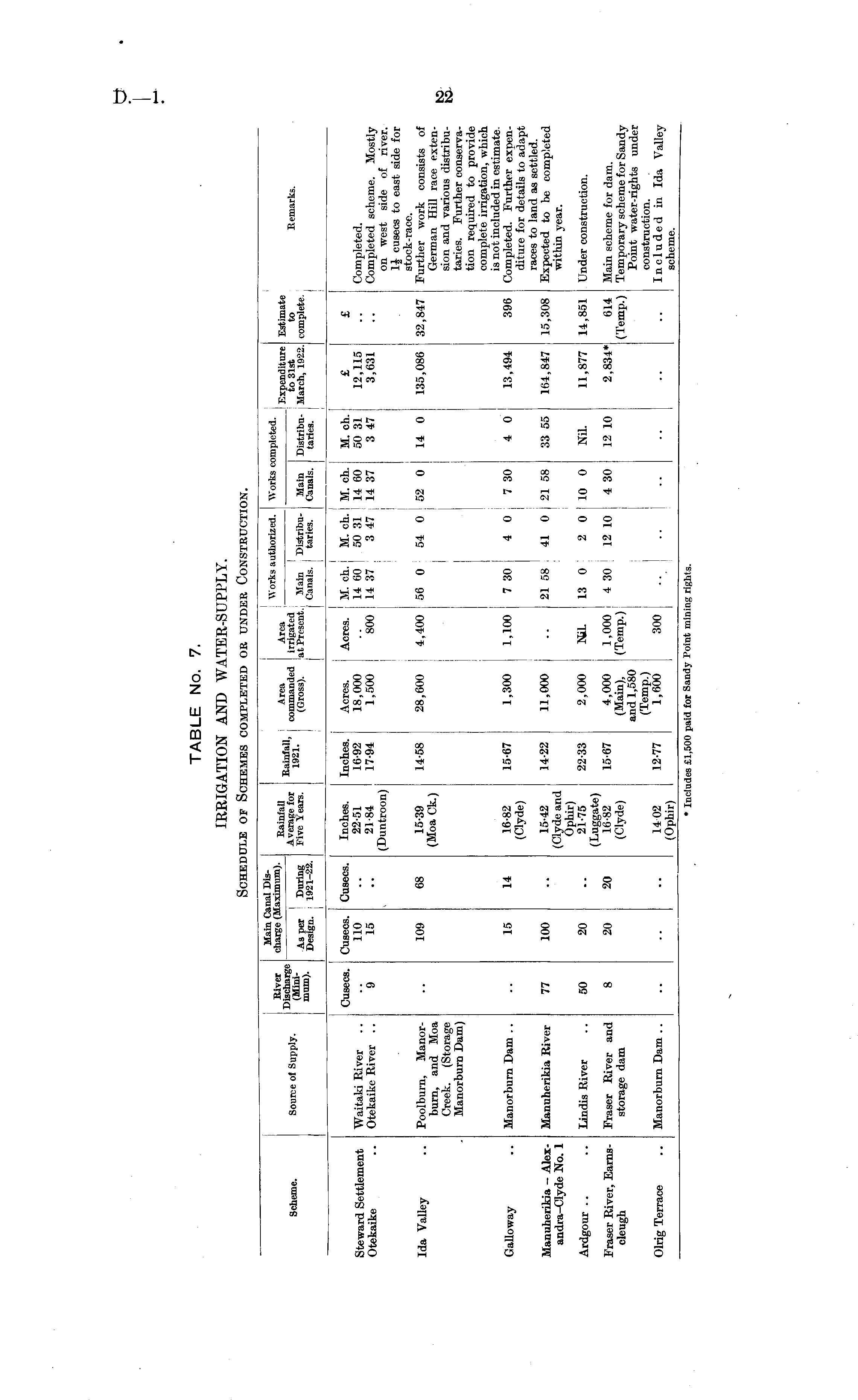 TABLE No. 7. IRRIGATION AND WATER-SUPPLY. Schedule of Schemes completed or under Construction.