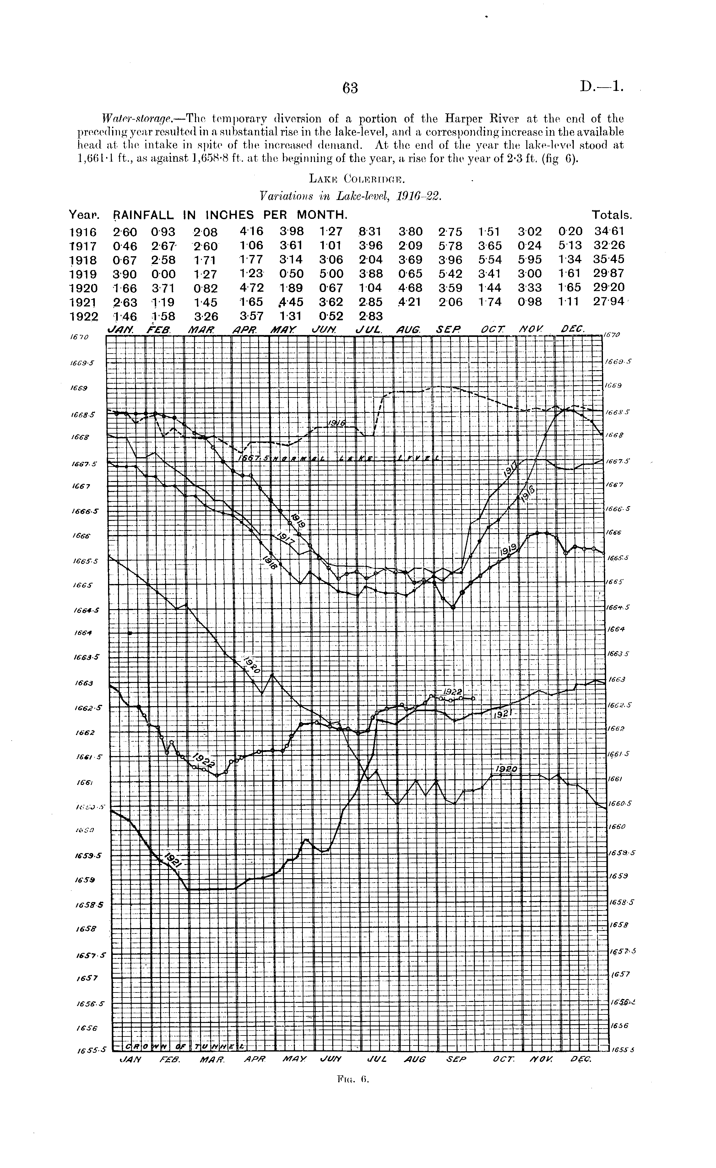 Lake Coleridge. Variations in Lake-level, 1916-22.