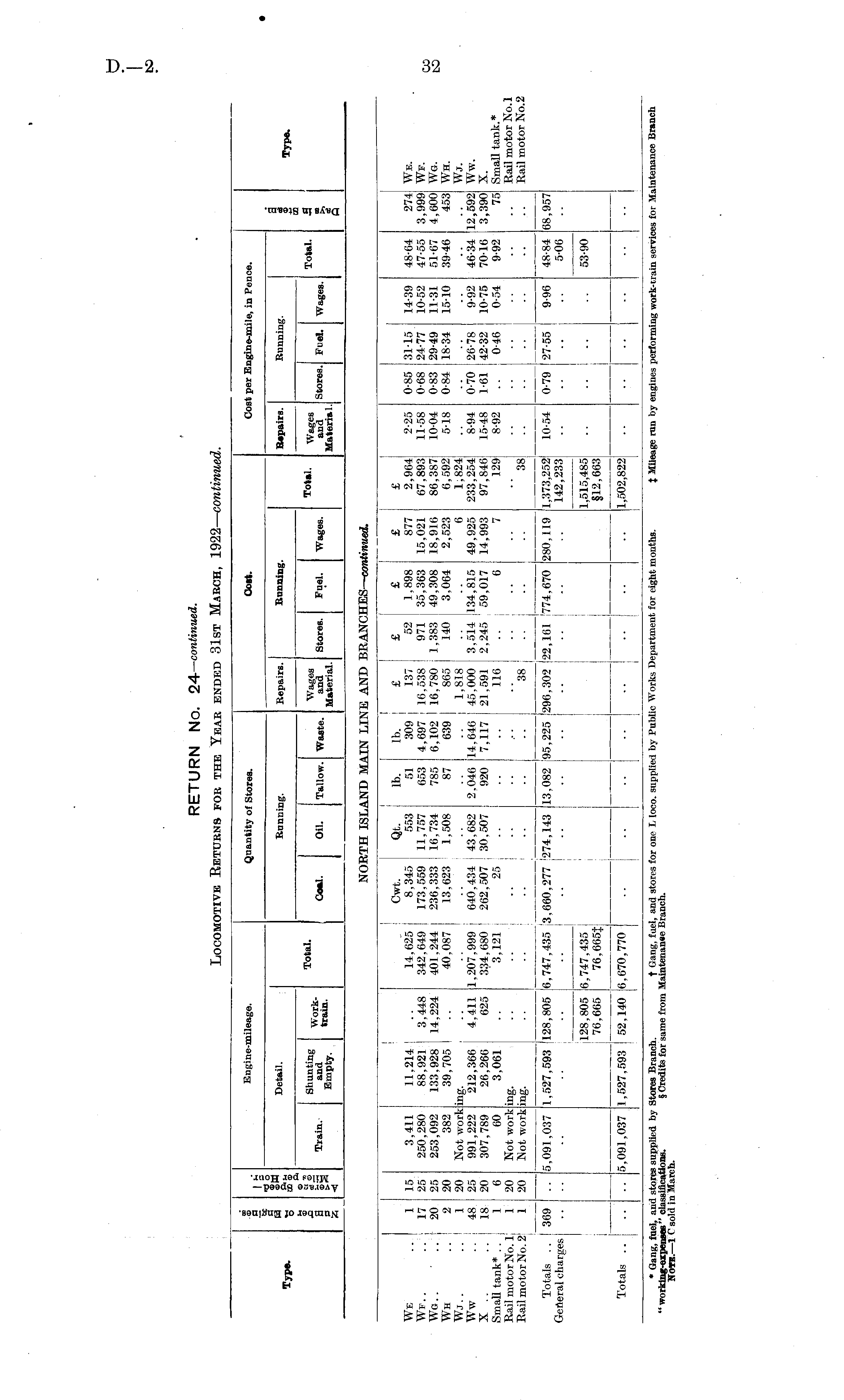 RETURN No. 24— continued. Locomotive Returns for the Year ended 31st March, 1922— continued.