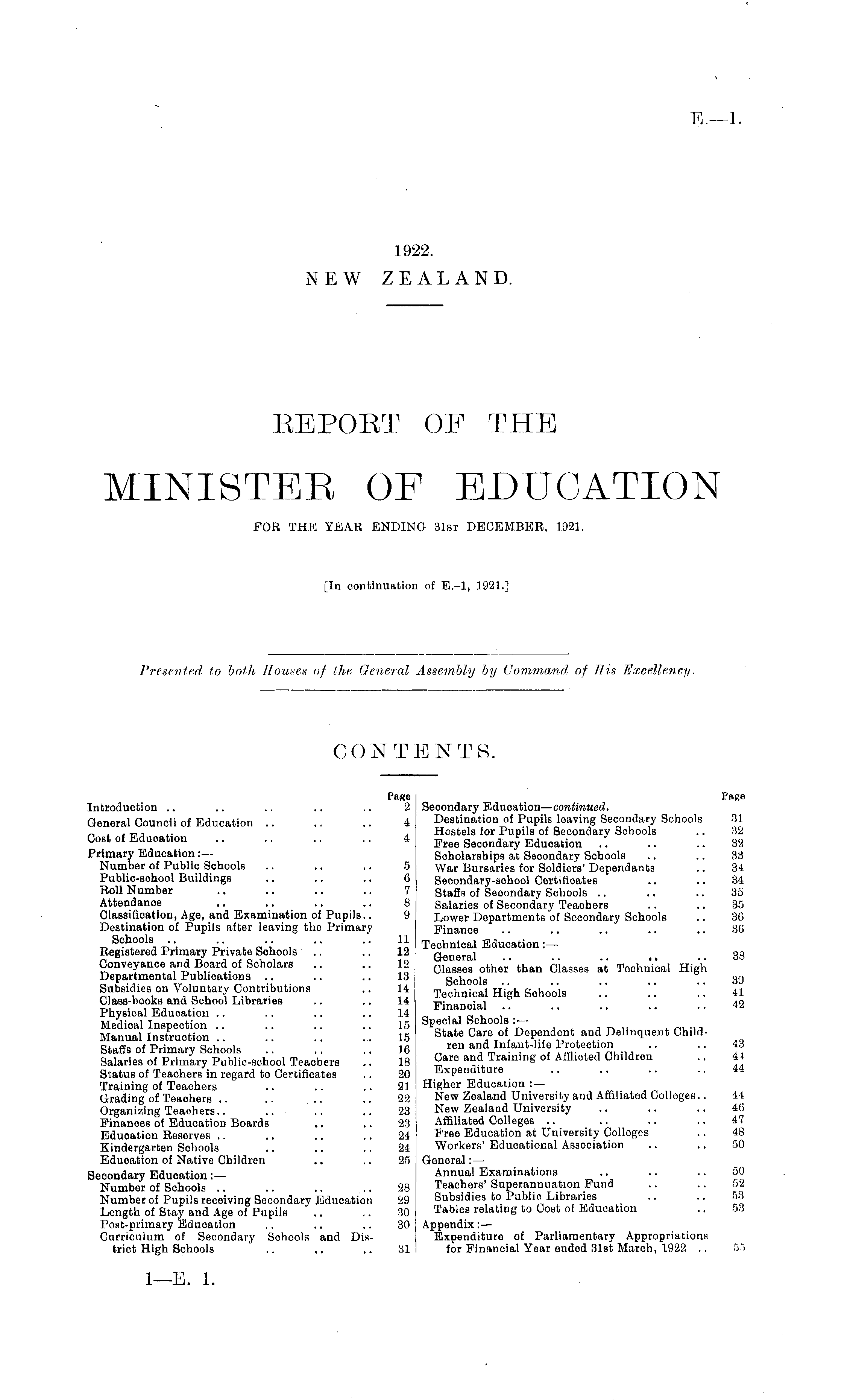 REPORT OF THE MINISTER OF EDUCATION FOR THE YEAR ENDING 31st DECEMBER, 1921.