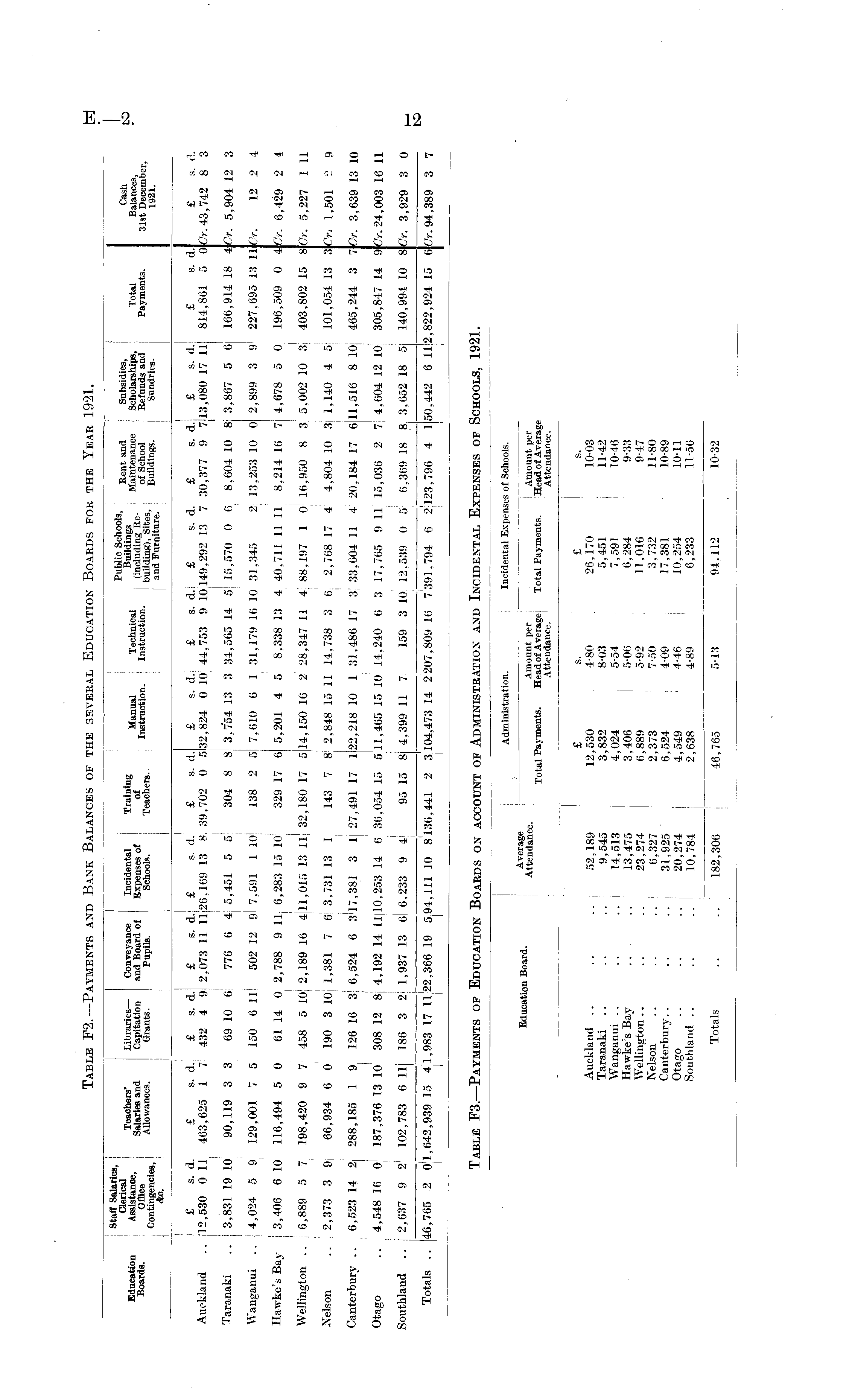 Table F2.—Payments and Bank Balances of the several Education Boards for the Year 1921.