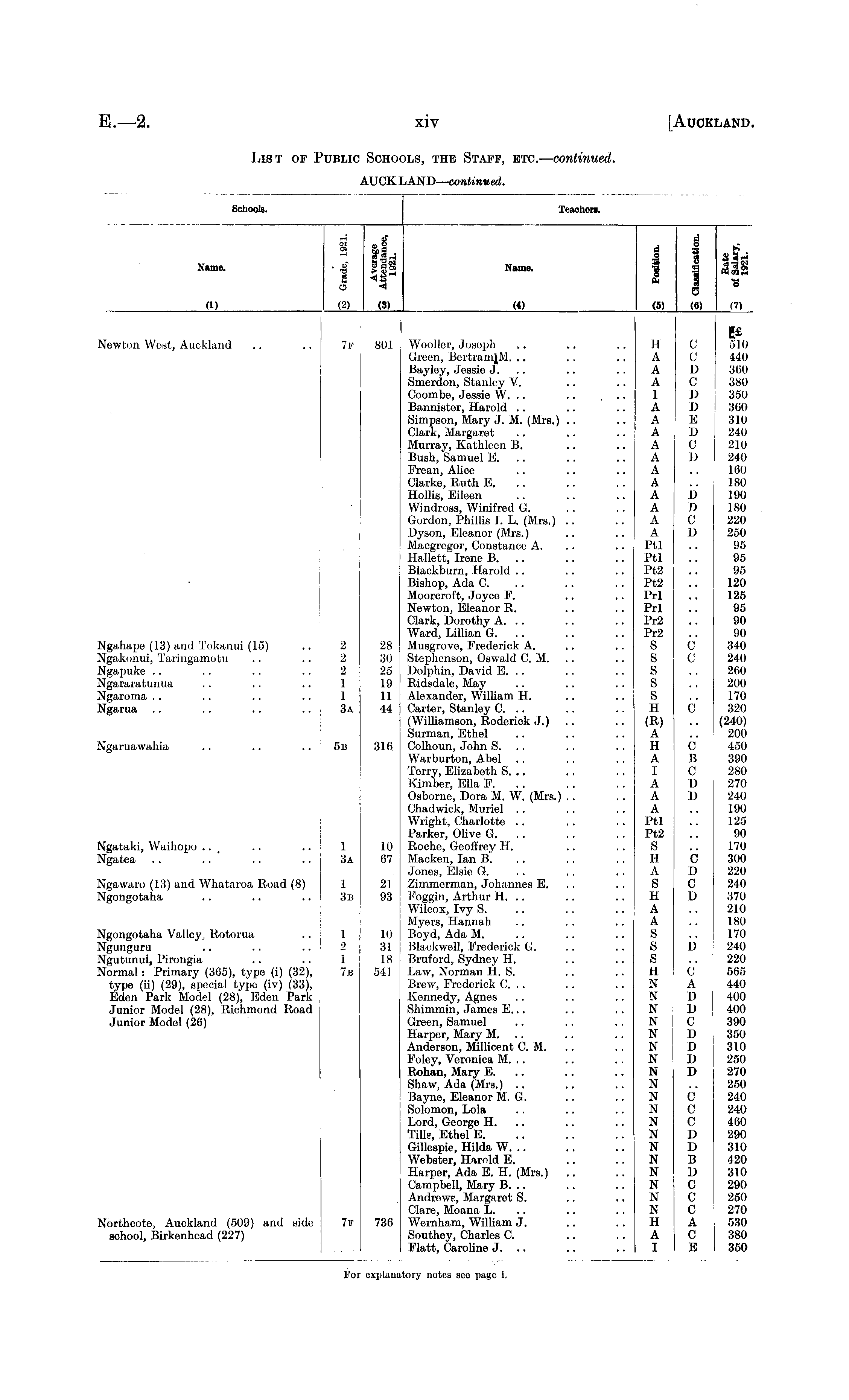 List of Public Schools, the Staff, etc. — continued. AUCKLAND— continued.