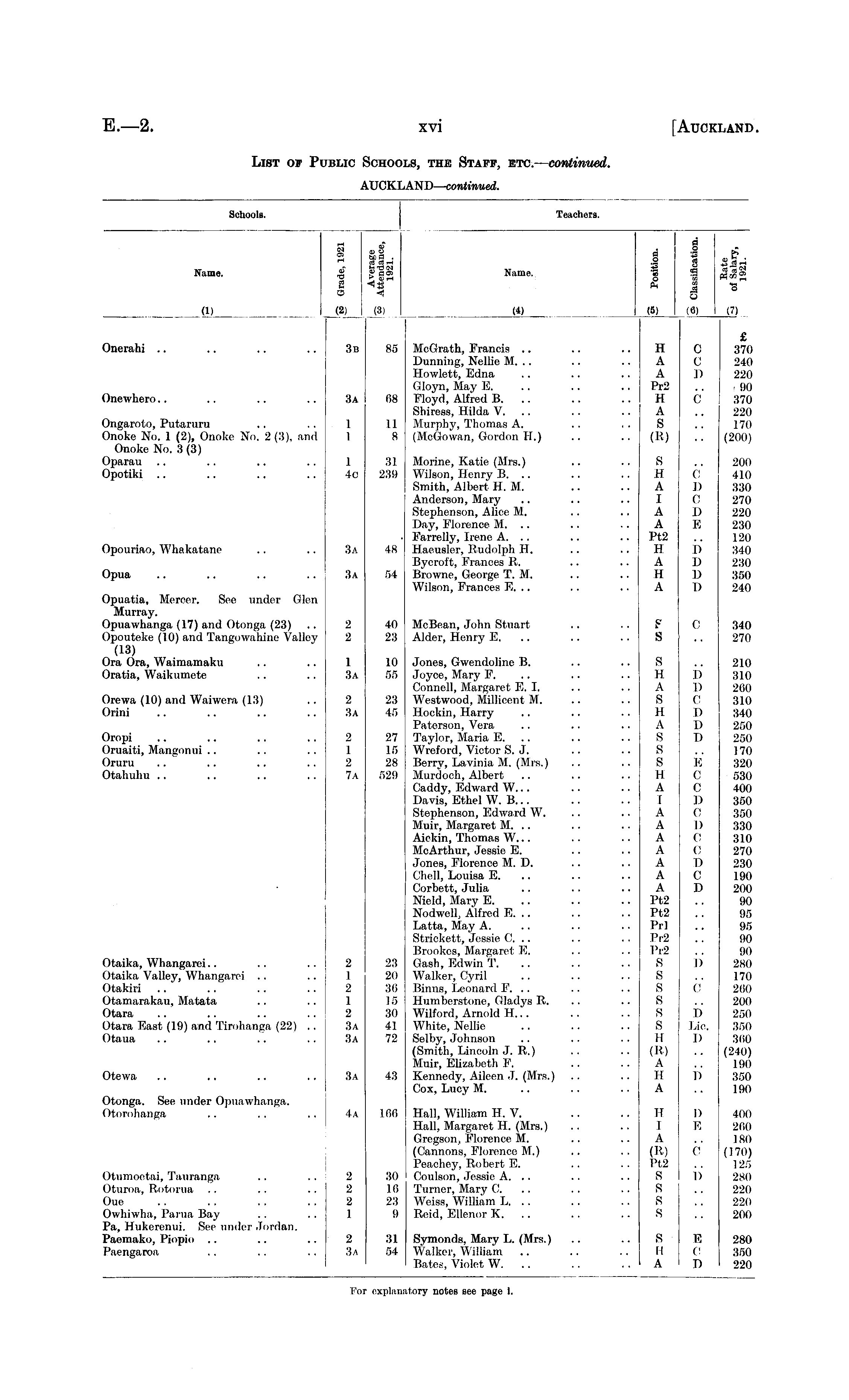 Schools. Teachers. S So . Name. £ |j| g <S a < 0) (2) (3) Name. Name. A o +3 I I i 8 9 'ra ra eS 5 (6) sh o < 7 >._ (1) (4) Onerahi .. .. .. .. 3b 85 McGrath, Francis .. Dunnirrg, Nellie M. .. Hewlett, Edna Gloyn, May E. Floyd, Alfred B. .. Shiress, Hilda V. Murphy, Thomas A. (McGowan, Gordon II.) H A A Pr2 H A S (R) C c D £ 370 240 220 i 90 370 220 170 (200) Onewhero.. .. .. .. 3a 68 C 3a 68 Ongaroto, Putaruru .. .. 1 11 Onoke No. 1 (2), Onoke No. 2(3), and 1 8 Onoke No. 3 (3) 1 1 11 8 Oparau .. .. .. .. 1 31 Opotiki .. .. .. .. 4c 239 Opouriao, Whakatane .. .. 3a 48 1 4o 31 239 Morine, Katie (Mrs.) Wilson, Henry B. .. Smith, Albert H. M. Anderson, Mary Stephenson, Alice M. Day, Florence M. .. Farrclly, Irene A. .. Haeusler, Rudolph H. Bycroft, Frances R. Browne, George T. M. Wilson, Frances E. .. S H A I A A Pt2 H A H A 0 1) c D E 200 410 330 270 220 230 120 340 230 350 240 Opua .. .. .. .. 3a 54 3a 3a 48 54 I) I) D I) Opuatia, Mercer. See under Glen Murray. Opuawhanga (17) and Otonga (23) .. 2 40 Opouteke (10) and Tangowahine Valley 2 23 (13) Ora Ora, Waimamaku .. .. 1 10 Oratia, Waikumete .. .. 3a 55 2 2 40 23 McBean, John Stuart Alder, Henry E. S 0 340 270 Orewa (10) and Waiwera (13) .. 2 23 Orini .. .. .. .. 3a 45 Oropi .. .. .. .. 2 27 Oruaiti, Mangonui .. .. .. 1 15 Oruru .. .. .. .. 2 28 Otahuhu .. .. .. .. 7a 529 1 3a 2 3a 2 1 2 7a 10 55 23 45 27 15 28 529 Jones, Gwendoline B. Joyce, Mary F. Connell, Margaret E. I. Westwood, Millieent M. Hookin, Harry Paterson, Vera Taylor, Maria 15. .. Wreford, Victor S. J. Berry, Lavinia M. (Mrs.) Murdoch, Albert Caddy, Edward W... Davis, Ethel W. B... Stephenson, Edward W. Muir, Margaret M. .. Aiekin, Thomas W... McArthur, Jessie E. Jones, Florence M. D. Chell, Louisa E. Corbett, Julia Nield, Mary E. Nodwcll, Alfred E. .. Latta, May A. Strickett, Jessie C .. Brookes, Margaret E. Gash, Edwin T. Walker, Cyril Birrns, Leonard F. .. Humberstone, Gladys R. Wilford, Arnold H... White, Nellie. Selby, Johnson (Smith, Lincoln J. R.) Muir, Elizabeth F. Kennedy, Aileen J. (Mrs.) Cox, Lucy M. S H A S II A S S s H A I A A A A A A A Pt2 Pt2 Prl Pr2 Pr2 S S s s s s II (R) A II A I) I) C I) I) 1) 15 C C D 0 I) C 0 I) c D 210 310 260 310 340 250 250 170 320 530 400 350 350 330 310 270 230 190 200 90 95 95 90 90 280 170 260 200 250 350 360 (240) 190 350 190 Otaika, Whangarei.. .. .. 2 23 Otaika Valley, Whangarei .. .. 1 20 Otakiri .. .. .. .. 2 36 Otamarakau, Matata .. .. 1 15 Otara .. .. .. .. ! 2 30 Otara East (19) and Tirohanga (22) .. i 3a 41 Otaua .. .. .'. .. i 3a 72 2 1 2 1 2 3a 3a 23 20 36 15 30 41 72 i> 0 I) Lie. 1) Otewa .. .. .. .. 3a 43 3a 43 i) Otonga. See under Opuawhanga. Otorohanga .. .. .. 4a 166 4a 106 Hall, William H. V. Hall, Margaret H. (Mrs.) Gregson, Florence M. (Cannons, Florence M.) Peachey, Robert E. Coulson, Jessie A. .. Turner, Mary C. Weiss, William L. .. Reid, Ellenor K. .. II I A (R) Pt,2 S S s s D 15 400 200 180 (170) 125 280 220 220 200 Otumoetai, Tauranga .. .. 2 30 Oturoa, Rotorua .. .. .. 2 16 Oue .. .. .. .. 2 23 Owhiwha, Parua Bay .. .. 1 9 Pa, Hukerenui. See under Jordan. Paemako, Piopio .. .. .. 2 31 Paengaroa . . . . .. 3a 54 C 2 2 2 1 30 16 23 9 i) 2 3a 31 54 Symonds, Mary L. (Mrs.) Walker, William Bates, Violet W. .. s II A E c D 280 350 220 For explam itory notes see i.-n'i- 1.