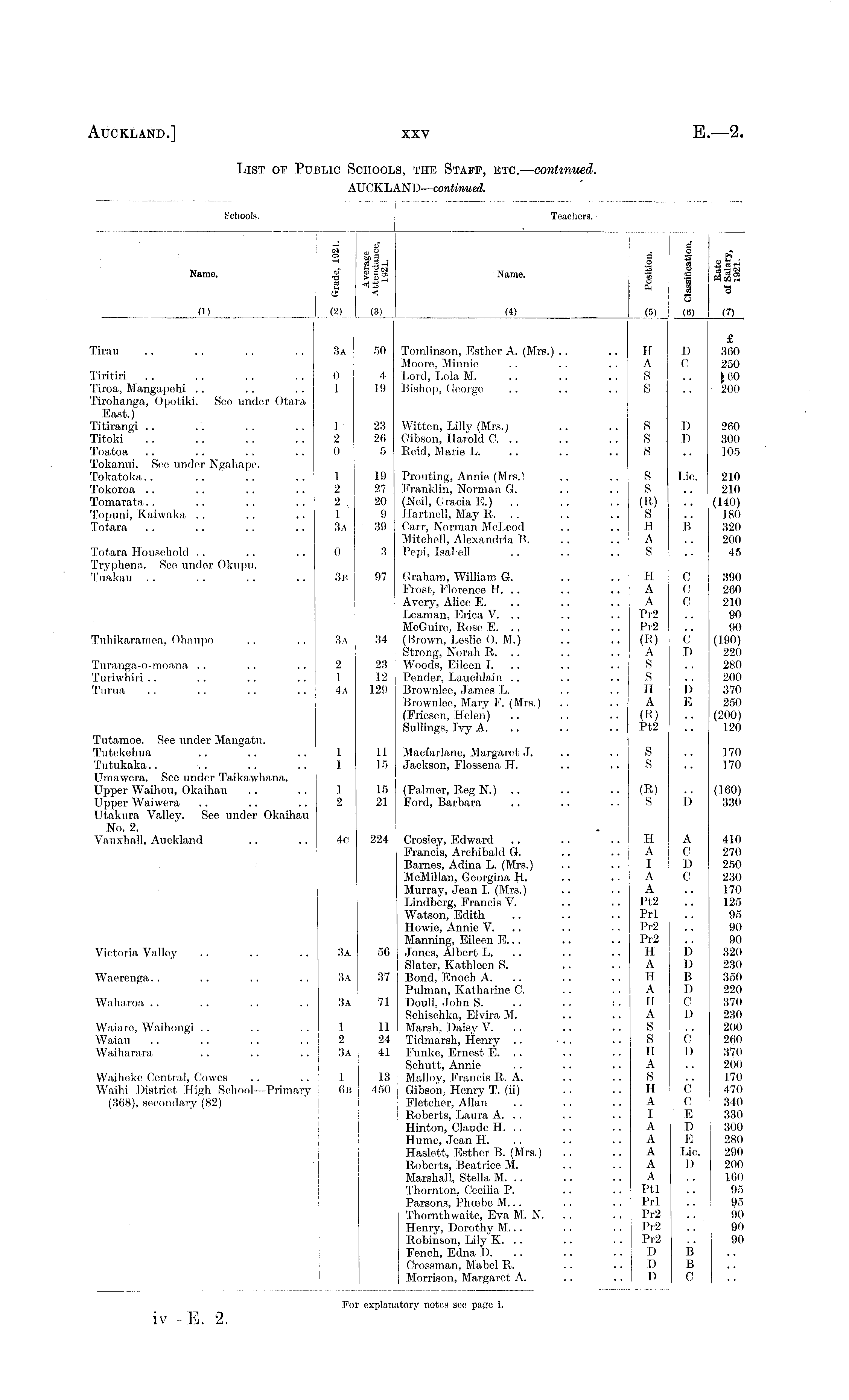 List of Public Schools, the Staff, etc. — continued. AUCKLAND— continued.