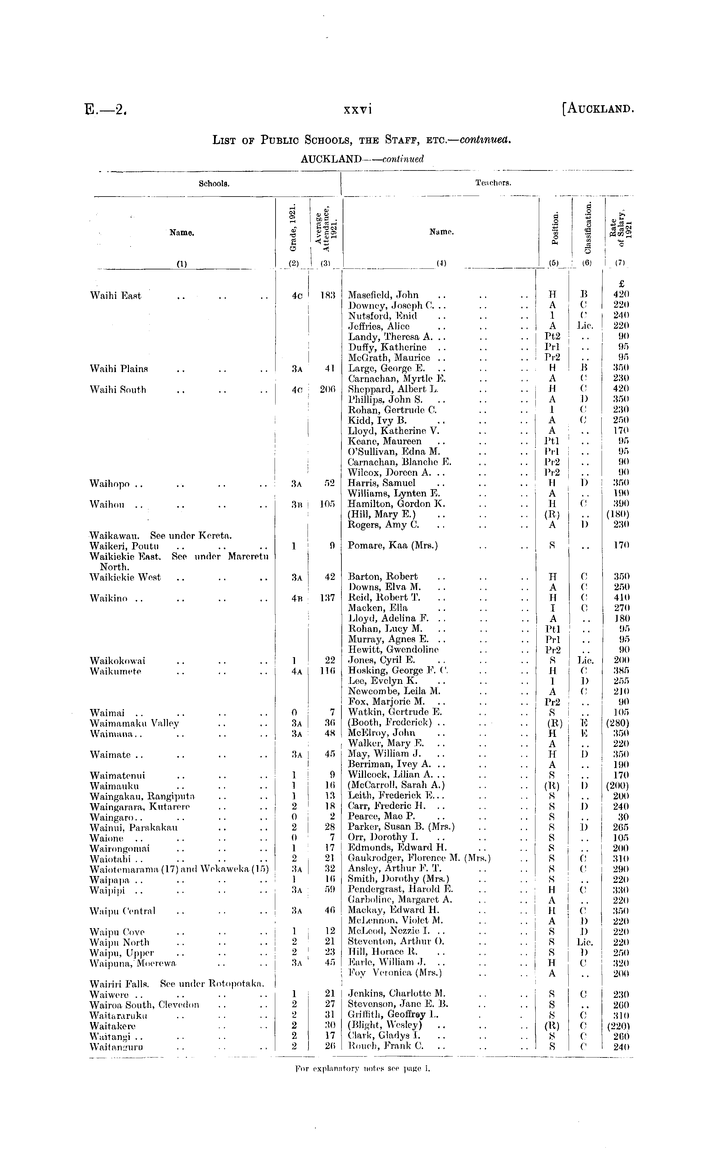 List of Public Schools, the Staff, etc. — continued. AUCKLAND continued