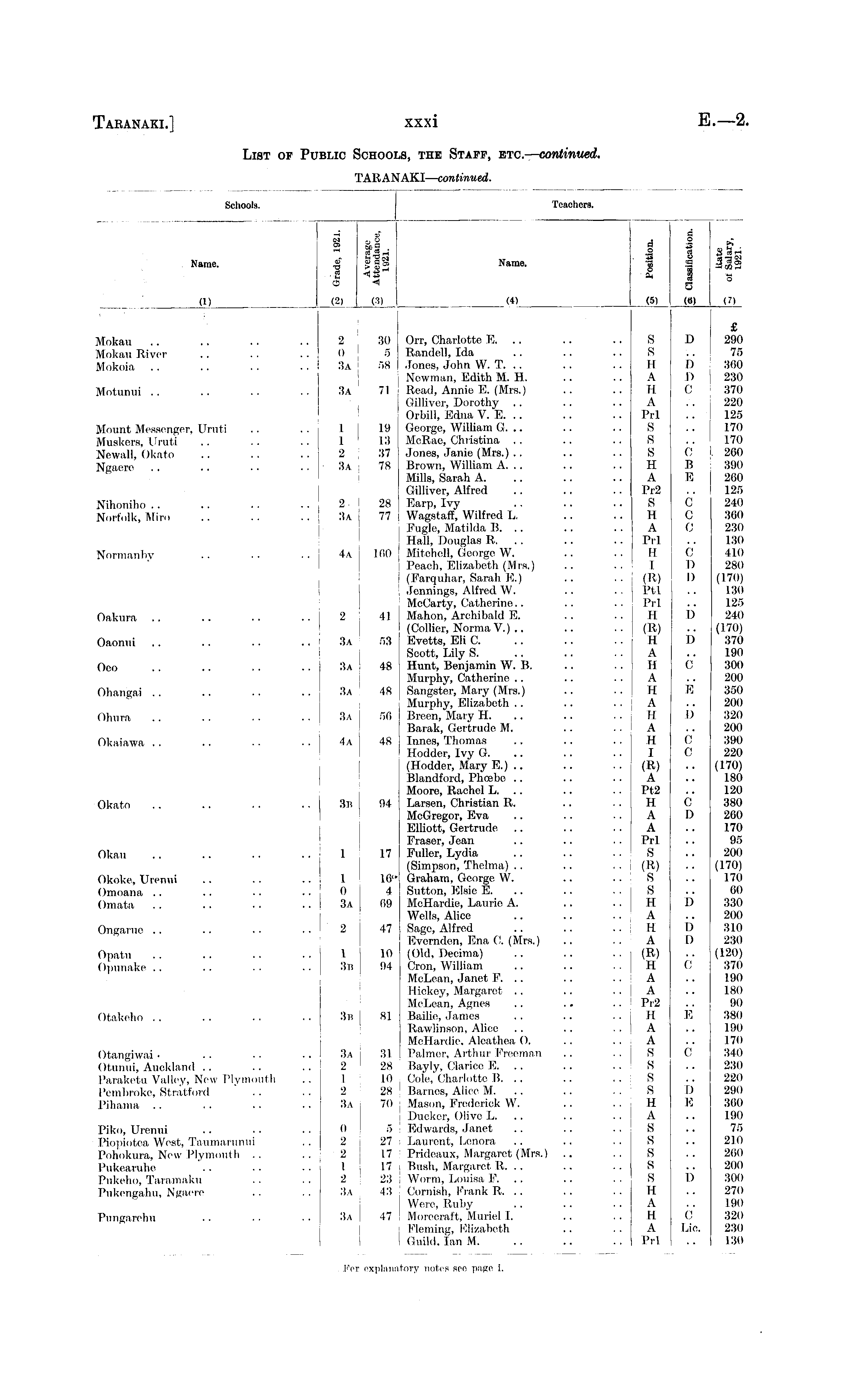 List of Public Schools, the Staff, etc. — continued. TARANAKI— continued.