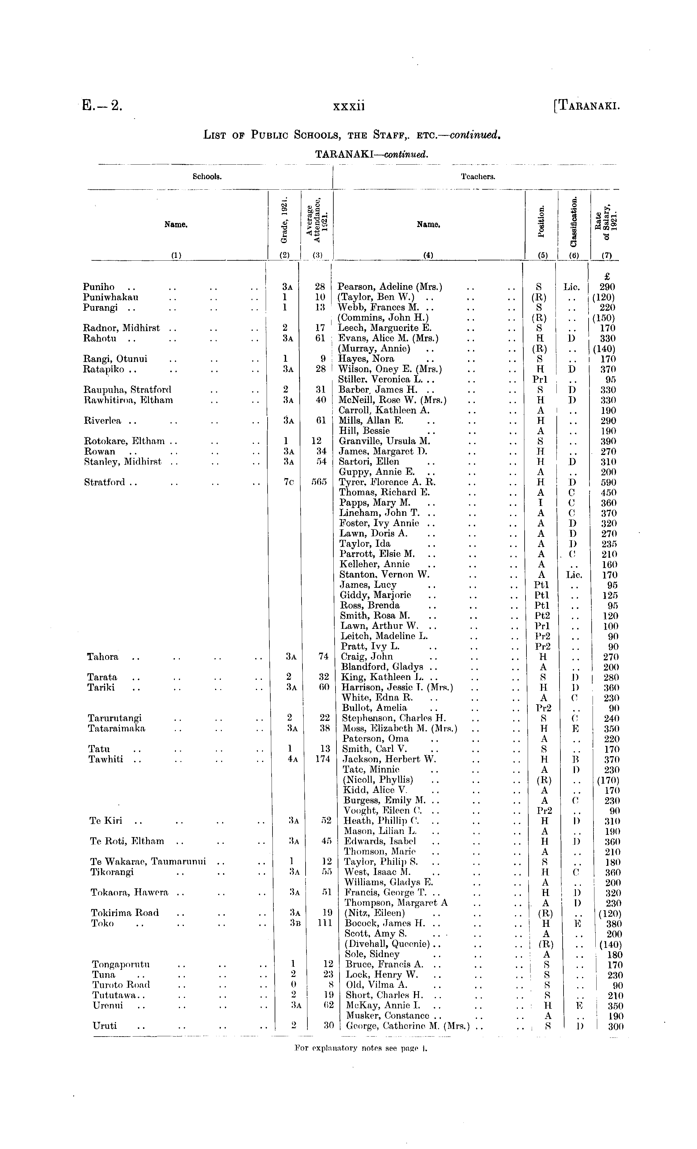 List of Public Schools, the Staff, etc. — continued. TARANAKI— continued.