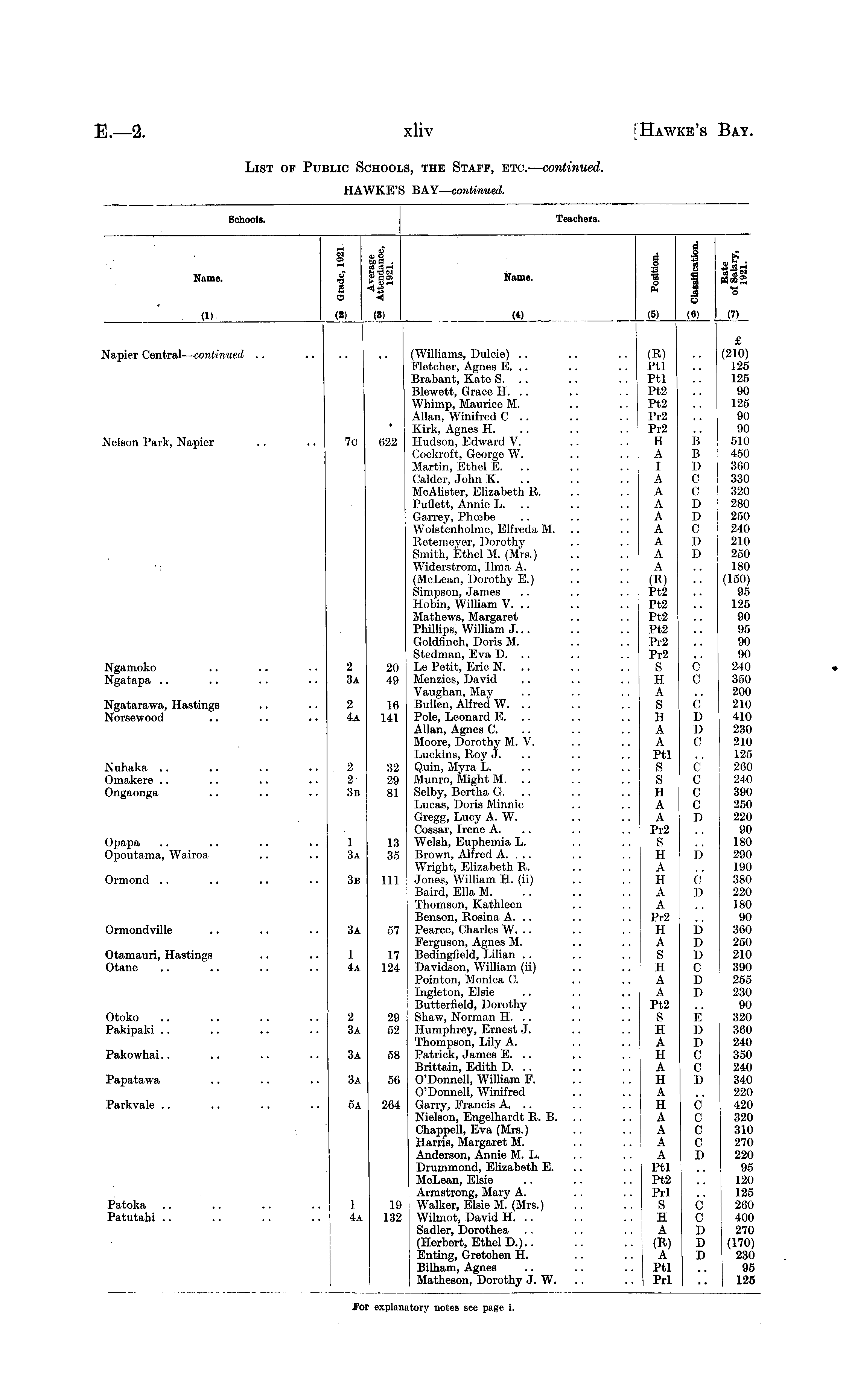 List of Public Schools, the Staff, etc. — continued. HAWKE'S BAY— continued.