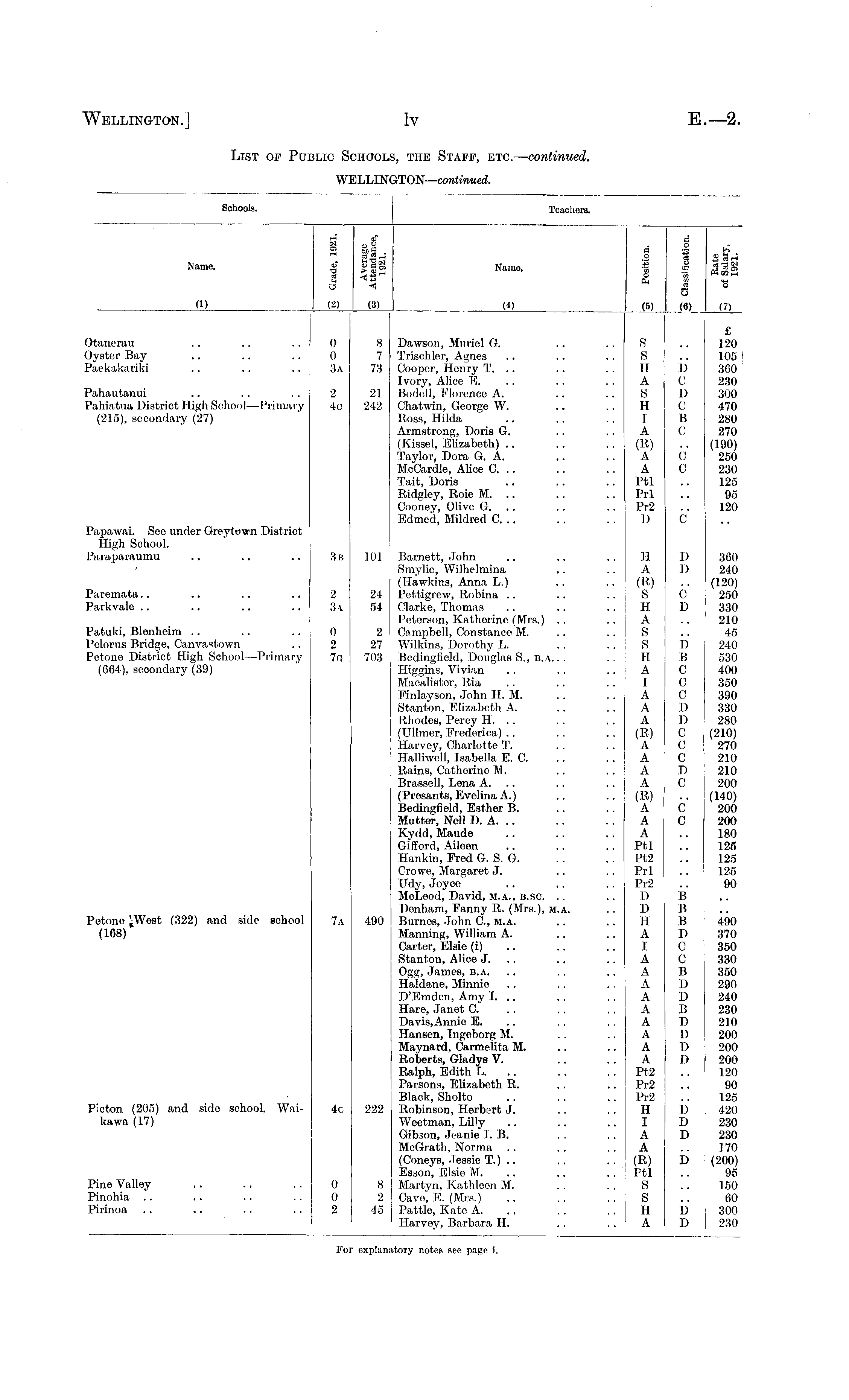 Schools. Teacliers. Name. £! o to 3 ">§ • 2 -IS (2) I (3) Namo. A © o I lis | * -< 6 >- (7) (1) (4) 15) Otanerau Oyster Bay Paekakariki Pahautanui Pahiatua District High School—Primary (215), secondary (27) 0 0 3a 2 4c 8 7 73 21 242 Dawson, Muriel G. Trischler, Agnes Cooper, Henry T. .. Ivory, Alice 15. Bodoll, Florence A. Chatwin, George W. Ross, Hilda Armstrong, Doris G. (Kissel, Elizabeth) Taylor, Dora G. A. McCardle, Alice C. .. Tait, Doris Ridgley, Roie M. .. Coonev, Olive G. .. Edmed, Mildred C. .. g g H A g H I A (R) A A Ptl Prl Pr-2 I) D C D C B C £ 120 105 360 230 300 470 280 270 (190) 250 230 125 95 120 C C Papawai. gee under Greytown District High gchool, Paraparaumu c 3 b 101 Barnett, John Smylie, Wilhelmina (Hawkins, Anna L.) Pettigrew, Robina Clarke, Thomas Peterson, Katherine (Mrs.) .. Campbell, Constance M. Wilkins, Dorothy L. Bedingfield, Douglas S., b.a.. . Higgins, Vivian Maoalister, Ria Finlayson, John H. M. Stanton, Elizaboth A. Rhodes, Percy H. .. (Ullmer, Frederica) Harvey, Charlotte T. Halliwell, Isabella E. C. Rains, Catherine M. Brassell, Lena A. (Presants, Evelina A.) Bedingfield, Esther B. Mutter, Nell D. A. .. Kydd, Maude Gifford, Aileen Hankin, Fred G. S. G. Crowe, Margaret J. Udy, Joyco McLeod, David, M.A., B.so. .. Denham, Fanny R, (Mrs.), m.a. Burnes, John C, m.a. Manning, William A. Carter, Elsio (i) Stanton, Alice J. Ogg, James, b.a. Haldane, Minnio D'Emden, Amy I. .. Hare, Janet C. Davis, Annie E. Hansen, Ingeborg M. Maynard, Carmelita M. Roberts, Gladys V. Ralph, Edith L. Parsons, Elizabeth R. Black, Sholto Robinson, Herbert J. Weetman, Lilly Gibson, Jeanie I. B. McGrath, Norma (Coneys, Jessie T.) .. Esson, Elsie M. Martyn, Kathleen M. Cave', E. (Mrs.) Pattie, Kate A. Harvey, Barbara H. H A (H) S H A S s H A I A A A (R) A A A A (tt) A A A Ptl Pt2 Prl Pr-2 D I) H A I A A A A A A A A A Pt2 Pr2 Pr2 H I A A (R) Ptl S S H A I) D 360 240 (120) 250 330 210 45 240 530 400 350 390 330 280 (210) 270 210 210 200 (140) 200 200 180 125 125 125 90 Paremata Parkvale 2 3 a 24 54 c D Patuki, Blenheim Pelorus Bridge, Canvastown Petone District High gchool—Primary (664). secondary (39) 0 2 7a 2 27 703 D B C C c I) D C c c 1) c c c Petone (322) and side school (168) 7.\ 490 B B B D C 0 B D D B I) D !> D 490 370 350 330 350 290 240 230 210 200 200 200 120 90 125 420 230 230 170 (200) 95 150 60 300 230 Picton (205) and side school, Waikawa (17) 4c 222 D I) D Pino Valloy Pinohia Pirinoa I) 0 0 2 8 2 45 D D I'm ex] ilani itori notes see ia| jei.