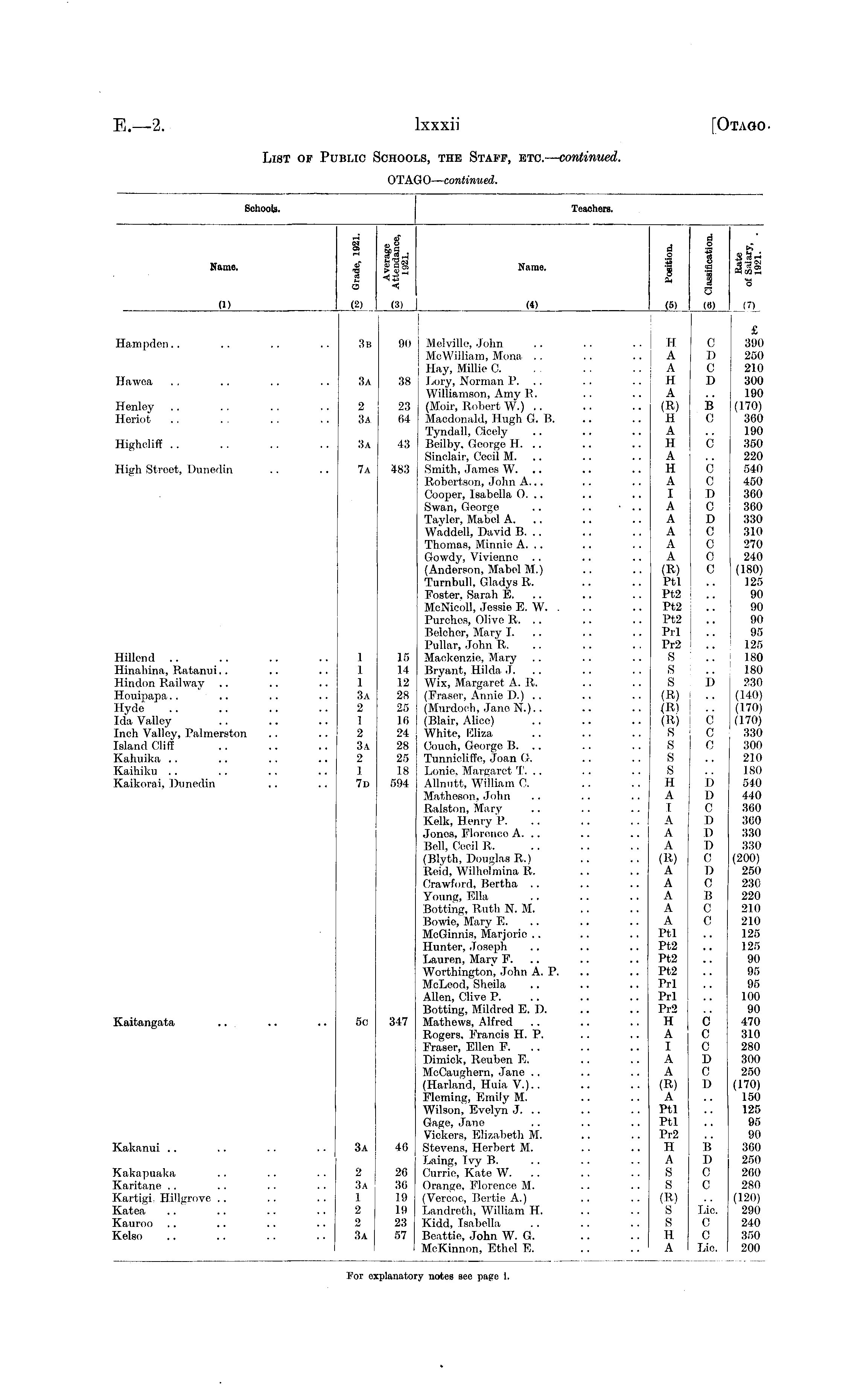 List of Public Schools, the Staff, etc. — continued. OTAGO — continued.