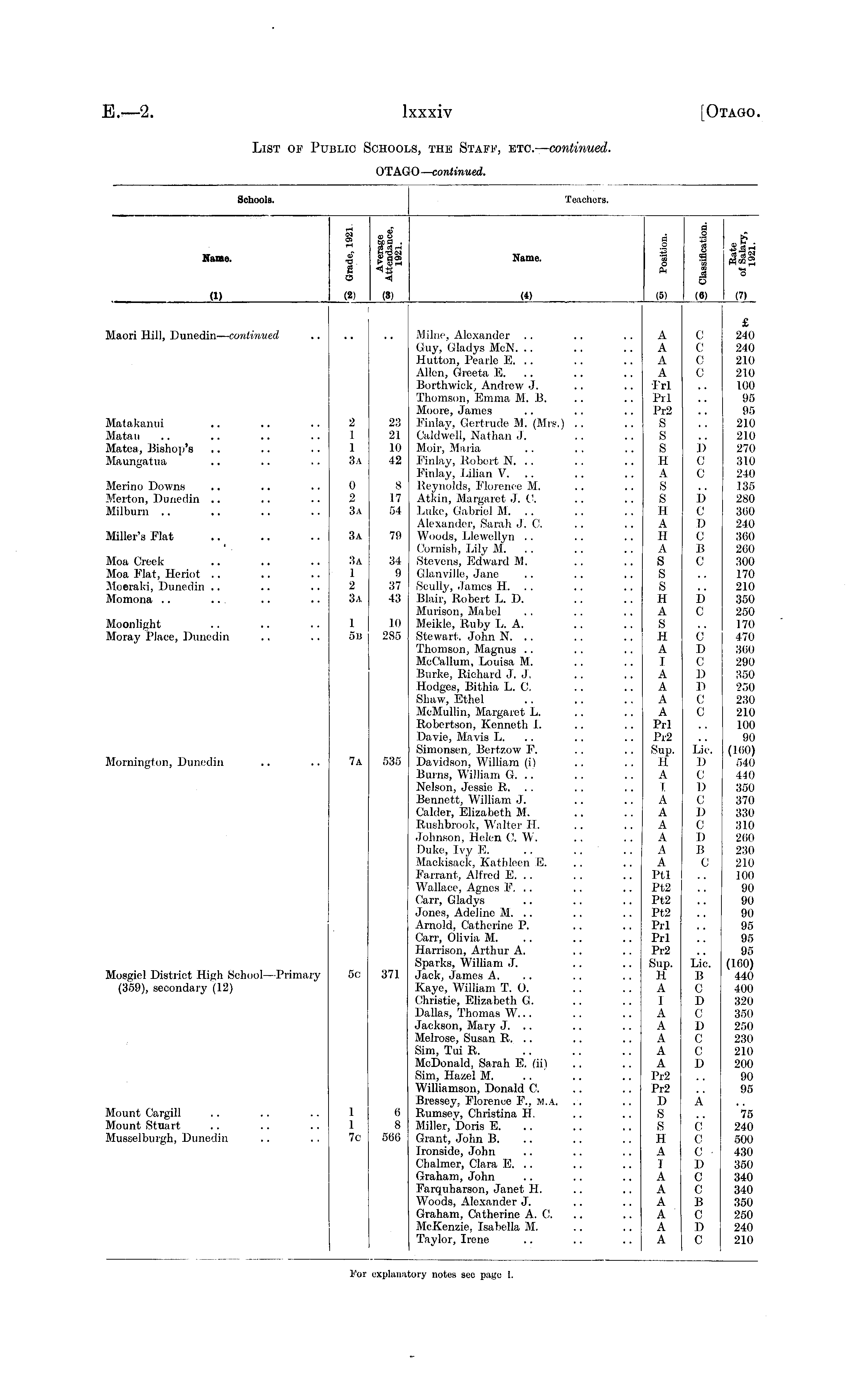 List of Public Schools, the Staff, etc. — continued. OTAGO— continued.