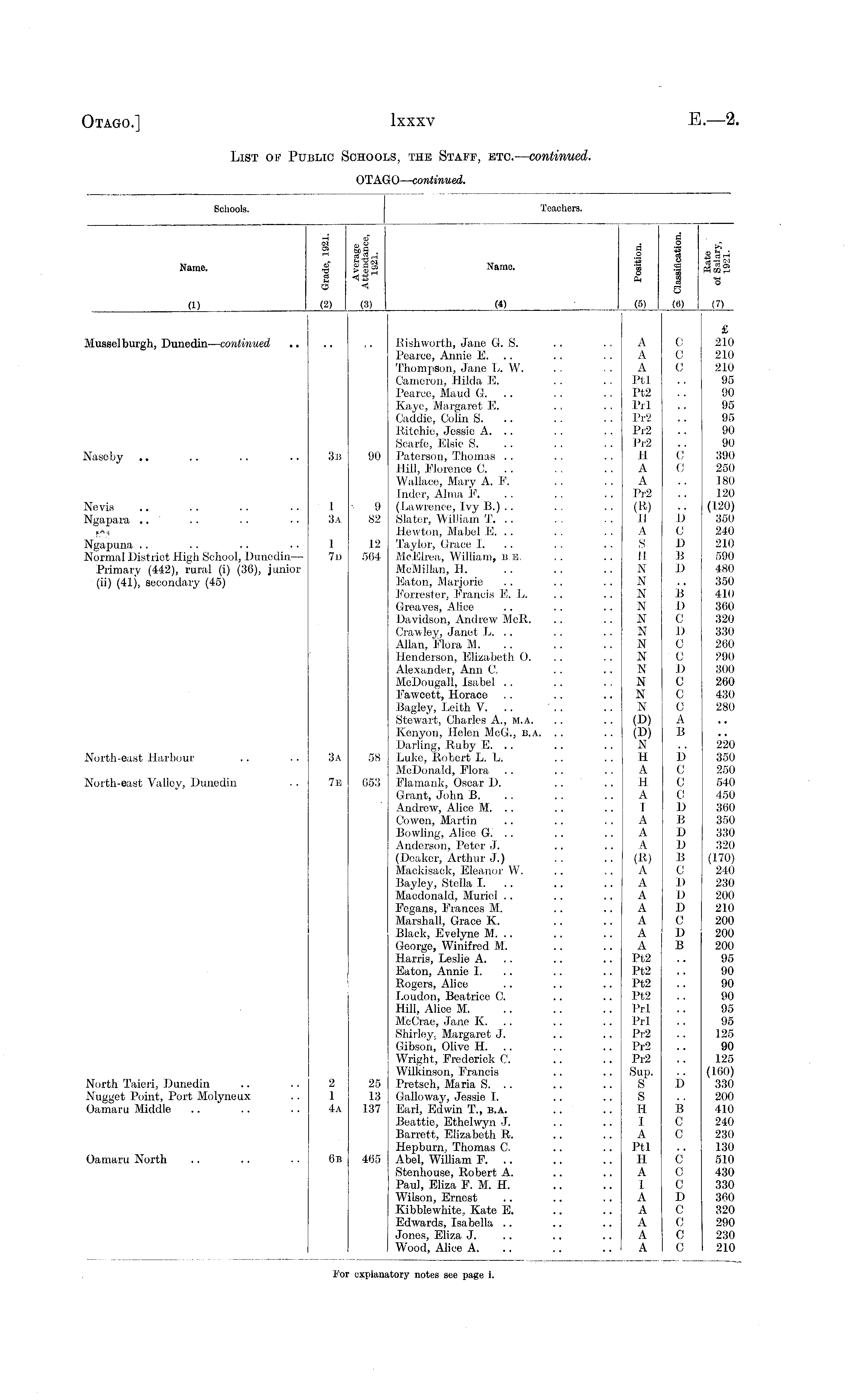 List of Public Schools, the Staff, etc. — continued. OTAGO — continued.