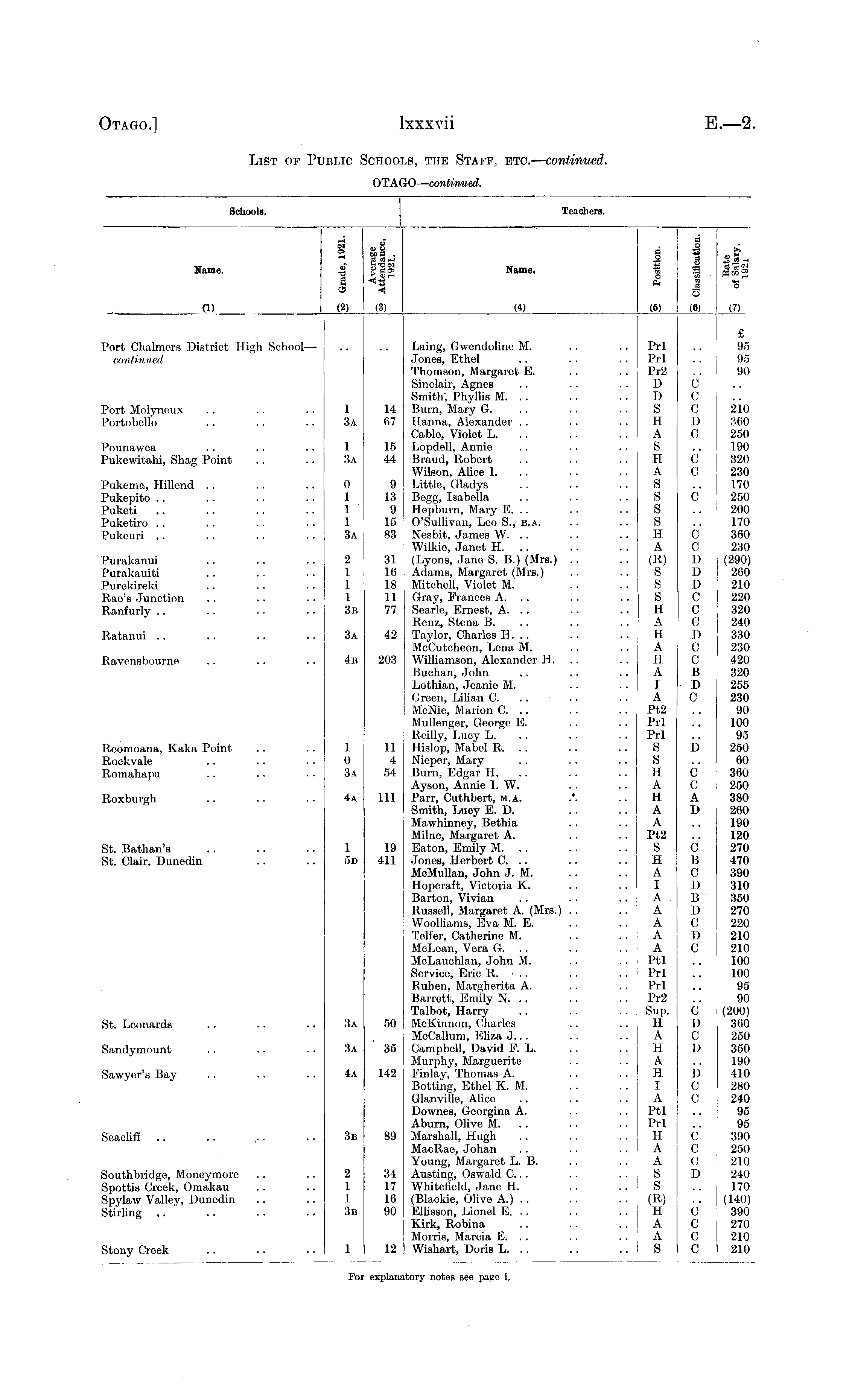 List of Public Schools, the Staff, etc. — continued. OTAGO— continued.