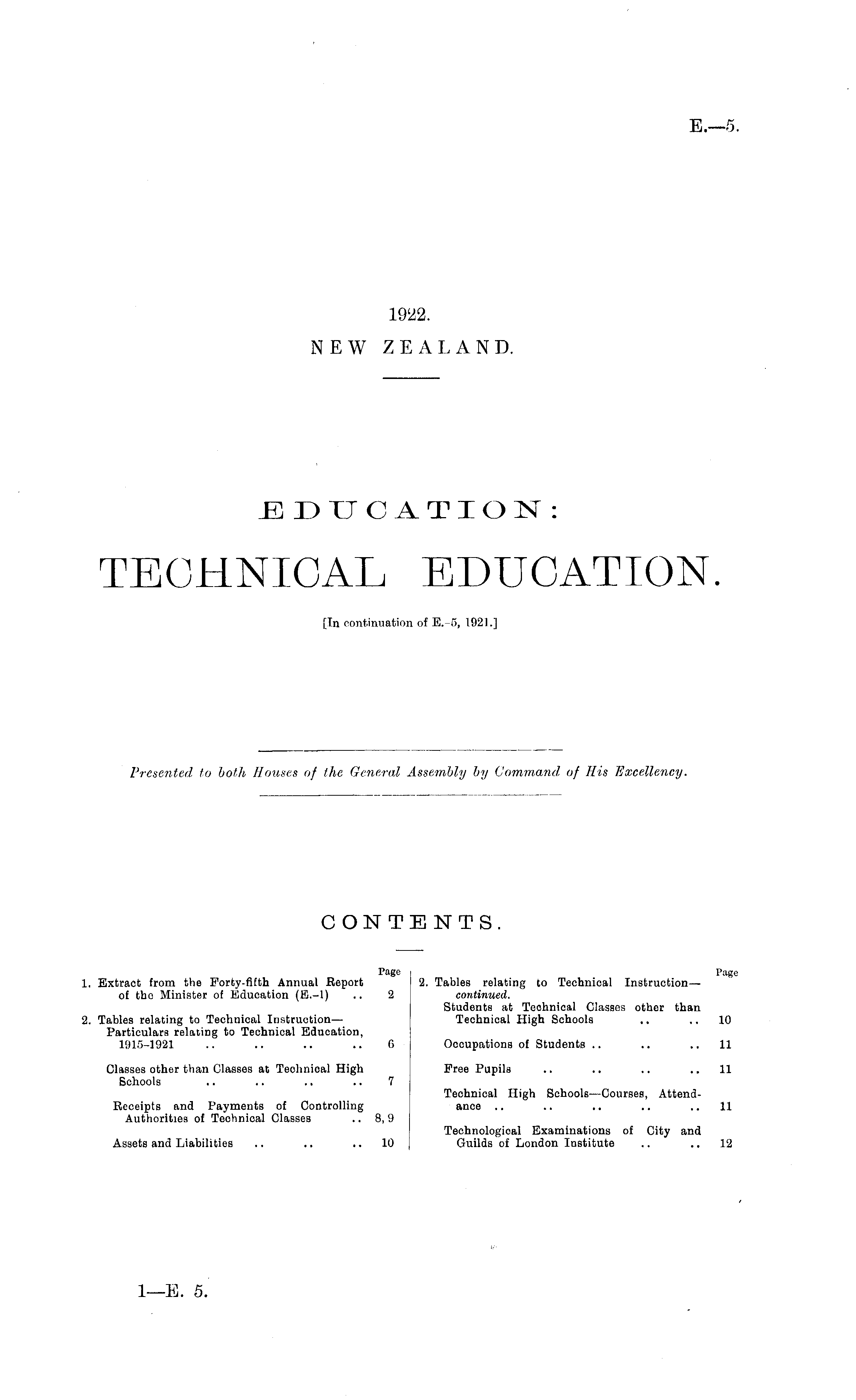 EDUCATION: TECHNICAL EDUCATION. [In continuation of E.-5, 1921.]