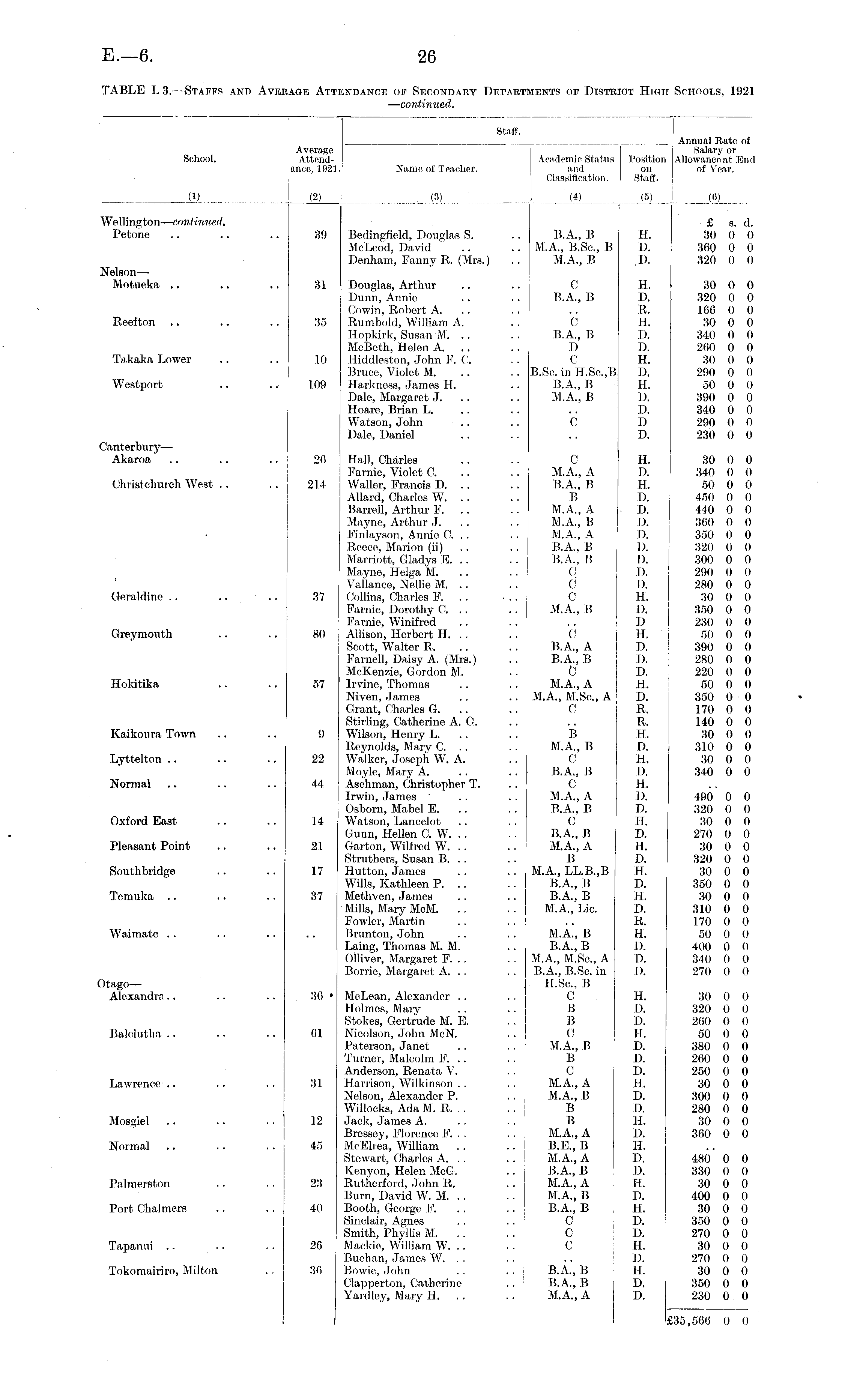 TABLE L3.-Staff and Average Attendance of Secondary Departments of District High Schools, 1921 — continued.