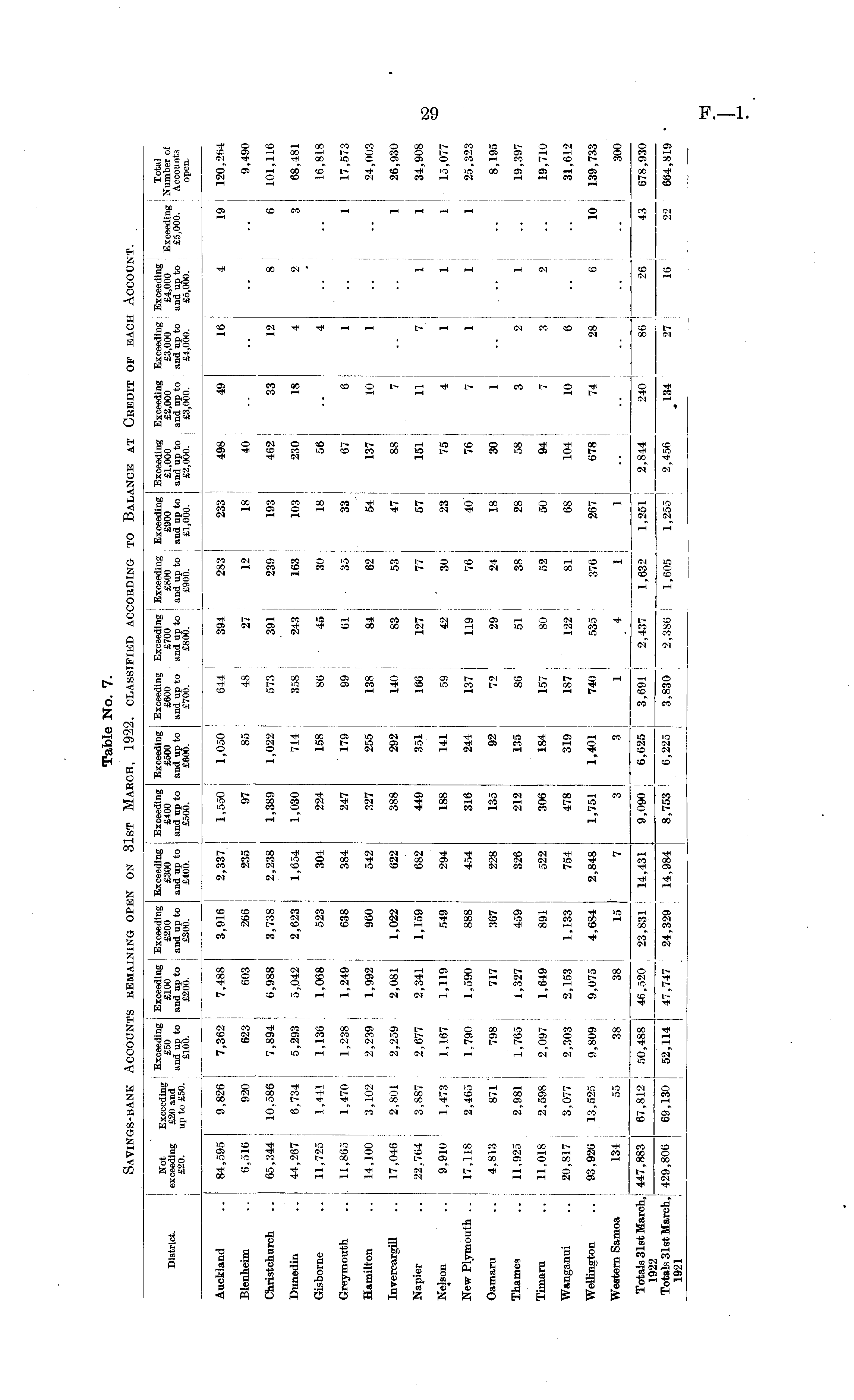 Table No. 7. Savings-bank Accounts remaining open on 31st March, 1922, classified according to Balance at Credit of each Account.