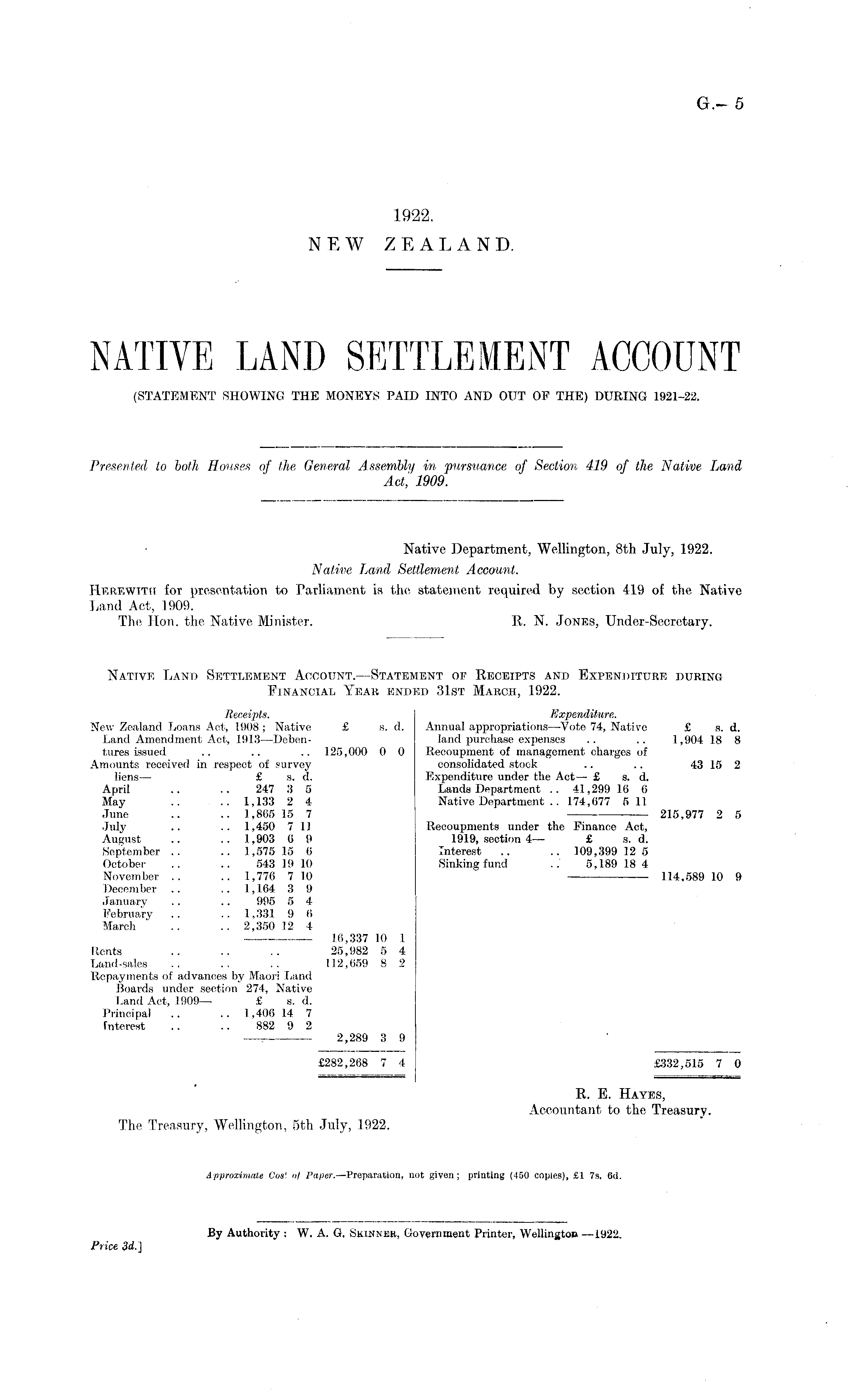 Authority : W. A. G. Skinner, Government Printer, Wellington —1922.